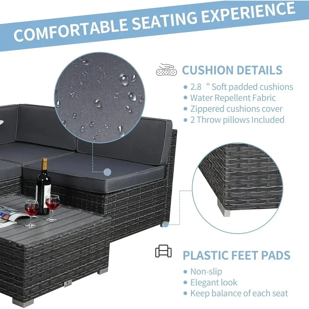 - 【Comfortable & Modern Design】Experience comfort with our outdoor sectional furniture. Each chair includes seat and back cushions, and two pillows are included for optimal support. Maintenance is easy with removable, washable cushion covers.