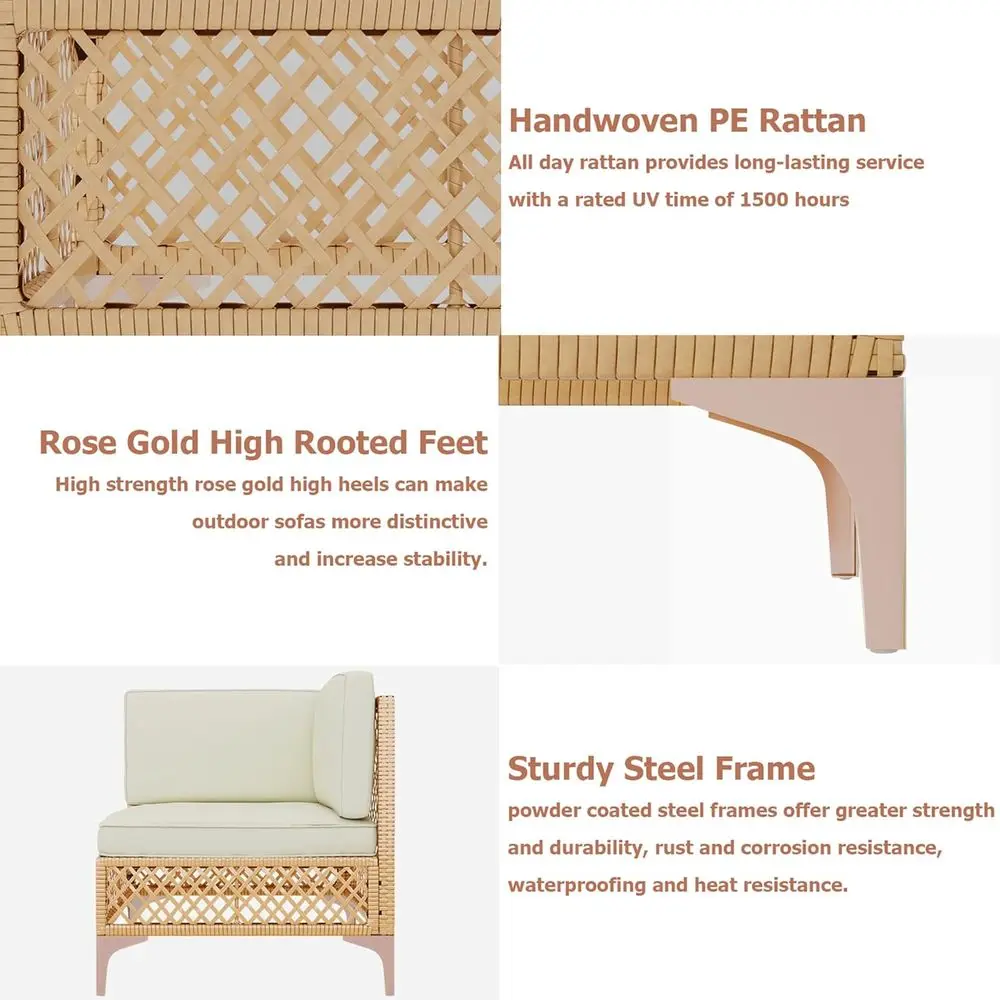 Boho Chic Meets All-Weather Strength: Crafted with thickened, anti-aging PE wicker rattan, this boho-style patio sofa set offers UV resistance, wear resistance, and all-weather durability, lasting twice as long as standard sets. Featuring beige cushions paired with handwoven wicker, the sofa blends a relaxed boho vibe with modern minimalism. Clean lines and tapered metal legs complete the sophisticated look, creating a cozy and stylish outdoor space.