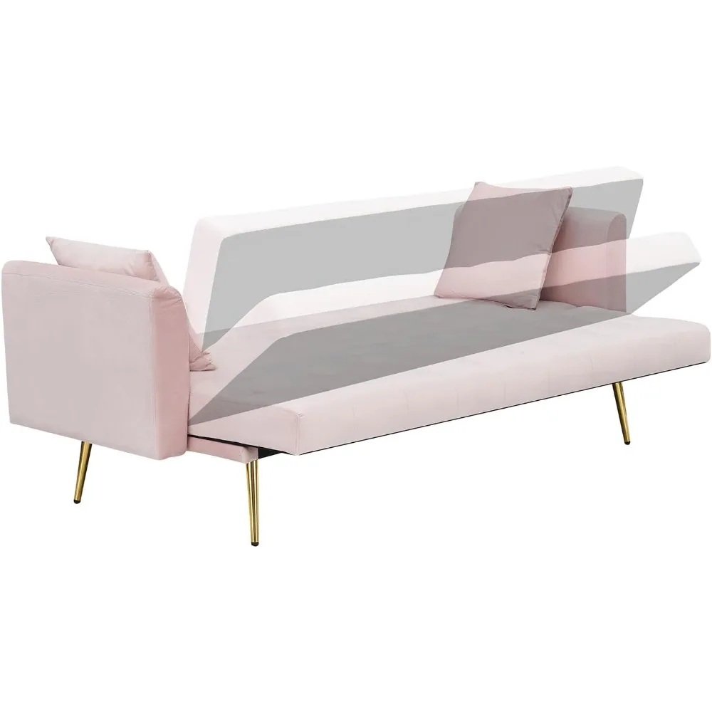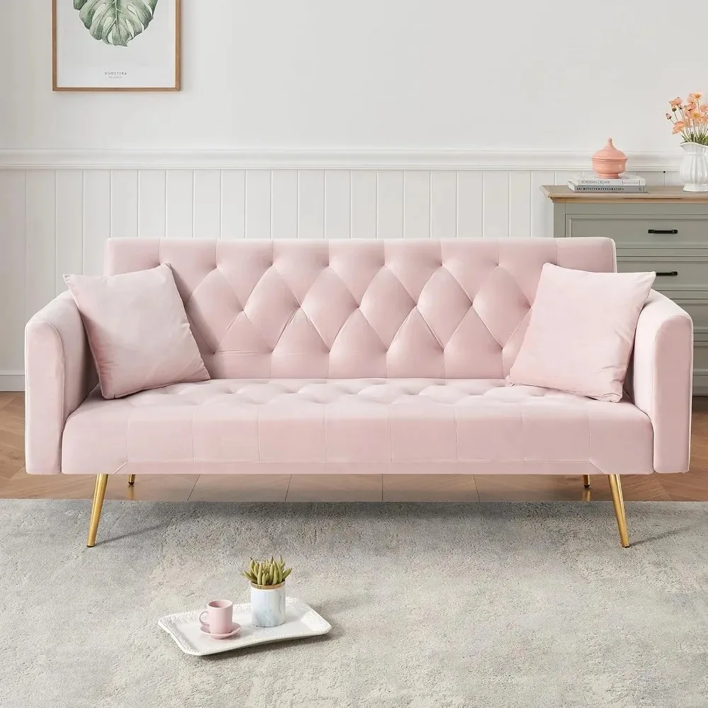 - Modern Elegance for Small Spaces: Transform your living area with this stylish sofa bed, featuring luxurious tufted velvet and sleek gold-tone metal legs. Its compact 71”x23”x30” design fits perfectly in apartments, studios, or guest rooms, adding a touch of contemporary charm to any decor