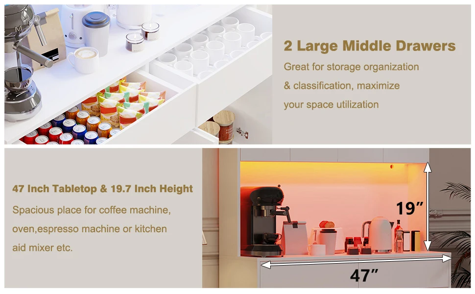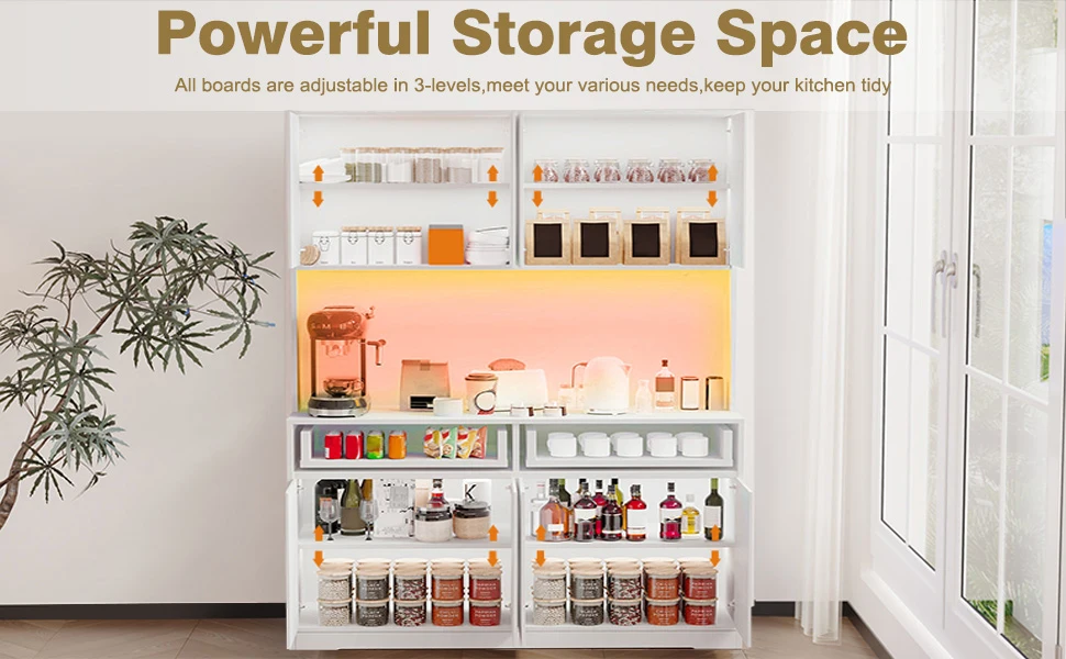 - Multi-scenario Applications: This versatile Food Pantry Cabinet is not only for kitchen use but also can be used as a buffet sideboard cabinet / mircrowave stand in dining room, or a console cabinet / coffee bar in living room, making it an ideal multi-scene furniture piece.