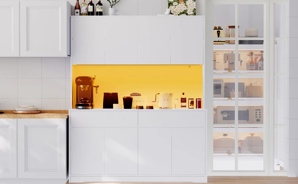 - Modern Minimalist Pantry: Featuring sleek white finish and clean smooth lines, this pantry cabinet with hutch creates a touch of elegant and charming modern vibe, that blends seamlessly with any home style and show your unique taste.