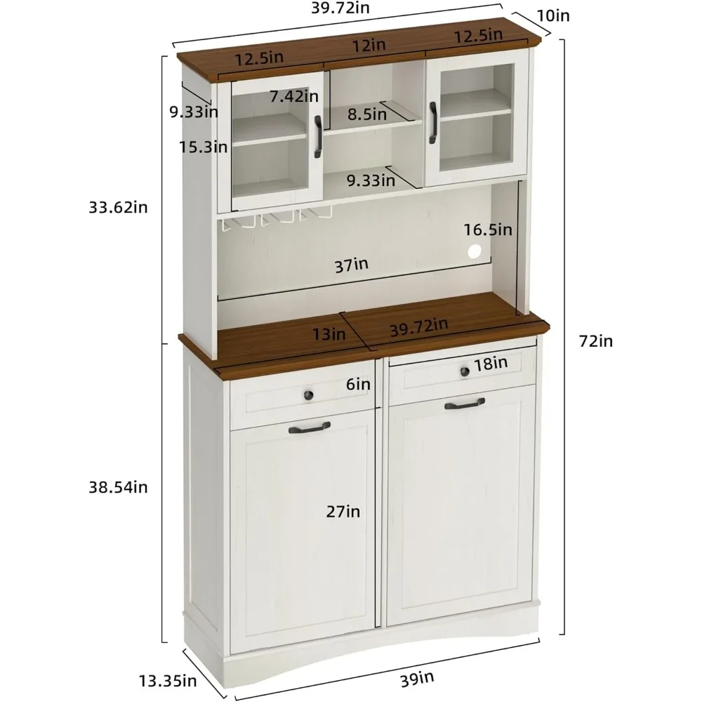 - 【Space Saving Concealment】The tilt-out trash can holds up to 13 gallons of trash and is a great way to hide your trash can while give your kitchen a more exquisite look and cleaner floors. It is a combination of cabinet and trash can, you can storage pet foods, and the top can be used to place decorative, daily supplies.
