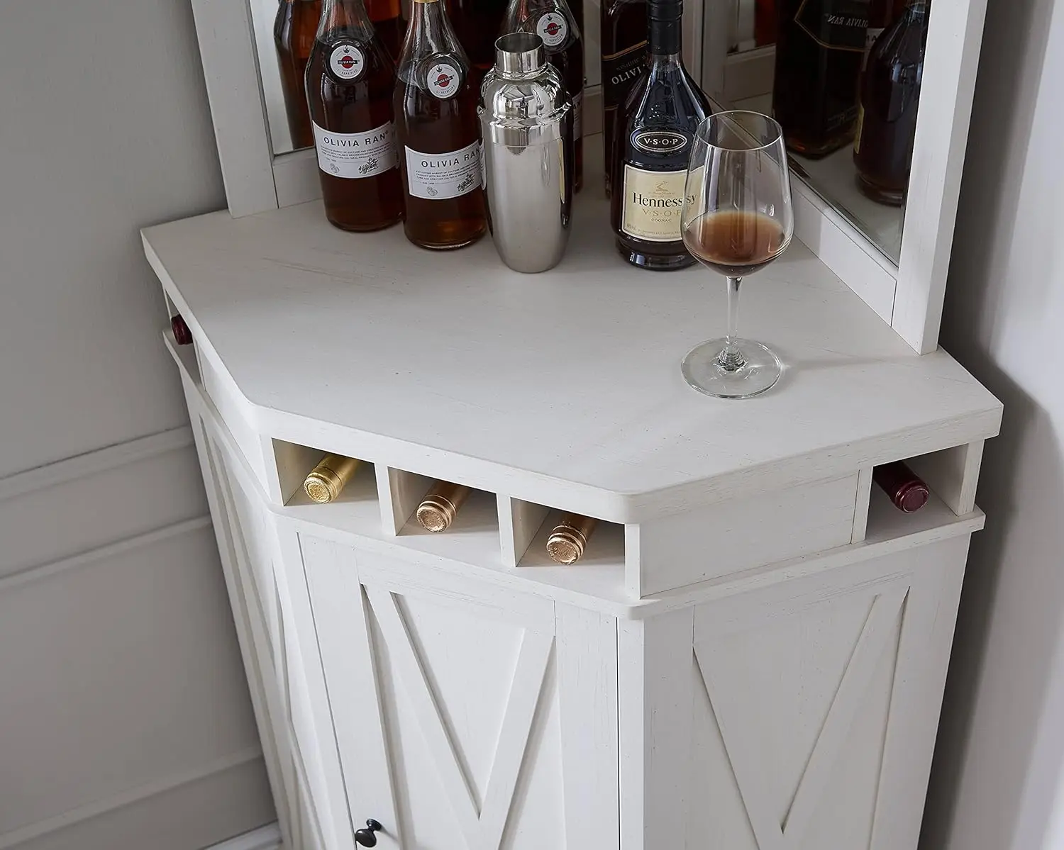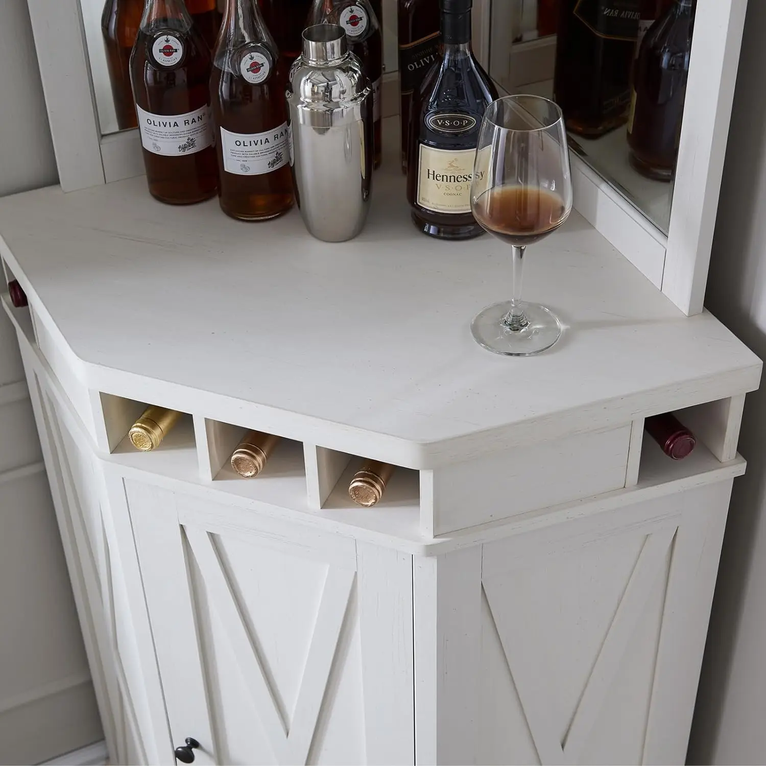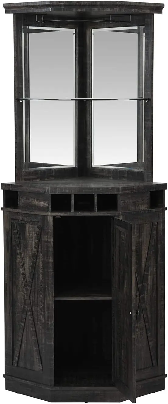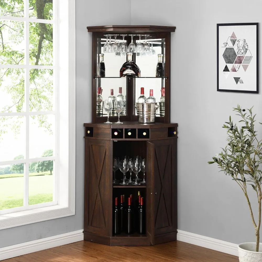 - 【Rational Design】Corner Bar Cabinet is a sophisticated and space-saving storage hutch that seamlessly combines a liquor rack and bar cabinet in one elegant piece. Crafted with modern aesthetics and premium engineered wood construction, this corner bar is designed to elevate your home entertainment experience while maximizing your available space.