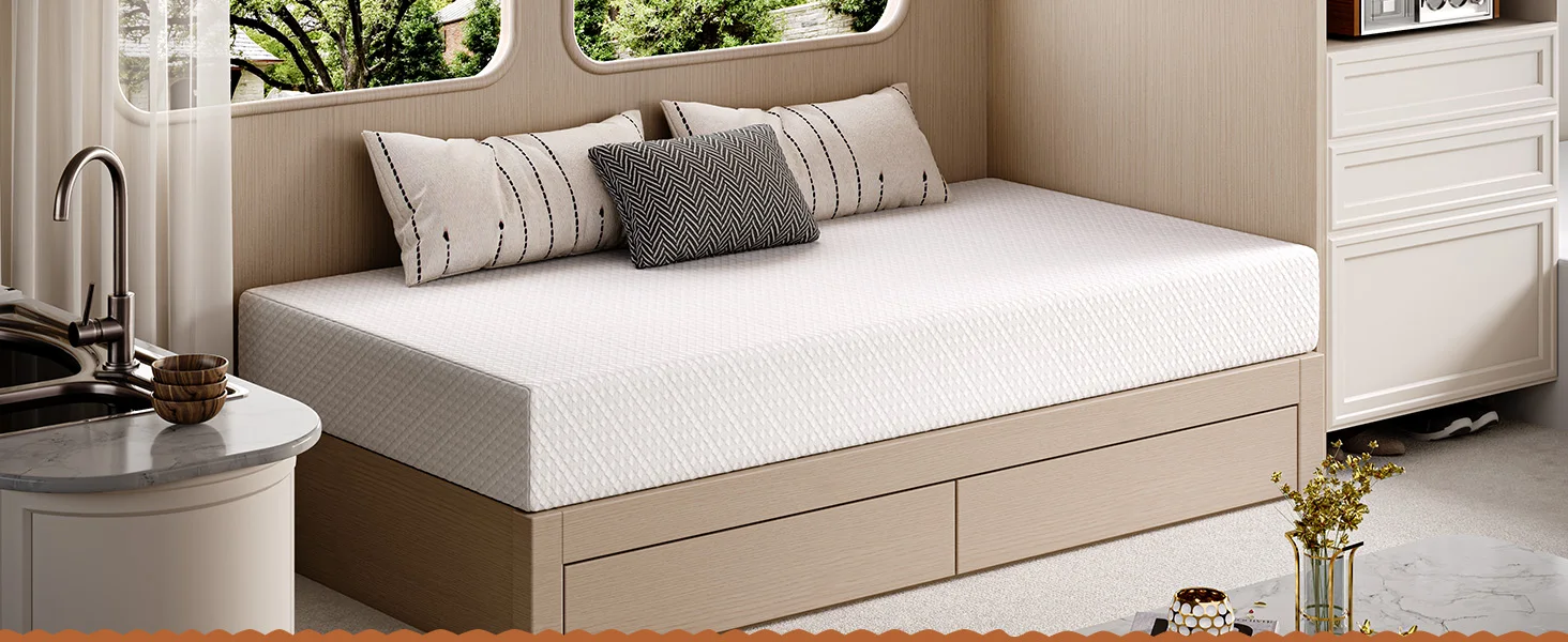 4. Body-Conforming Comfort: This foam mattress adopts a plush memory foam layer that fills gaps around your body, cradles pressure points like shoulders and hips, and promotes better spinal alignment. Passed the 100,000-cycle rolling test and 30,000-time hip simulation static pressure test, it offers a medium-firm feel