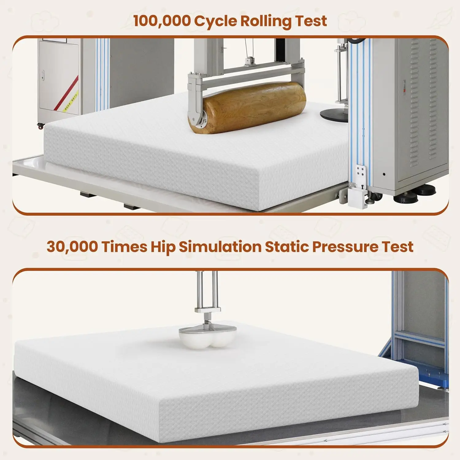 4. Body-Conforming Comfort: This foam mattress adopts a plush memory foam layer that fills gaps around your body, cradles pressure points like shoulders and hips, and promotes better spinal alignment. Passed the 100,000-cycle rolling test and 30,000-time hip simulation static pressure test, it offers a medium-firm feel