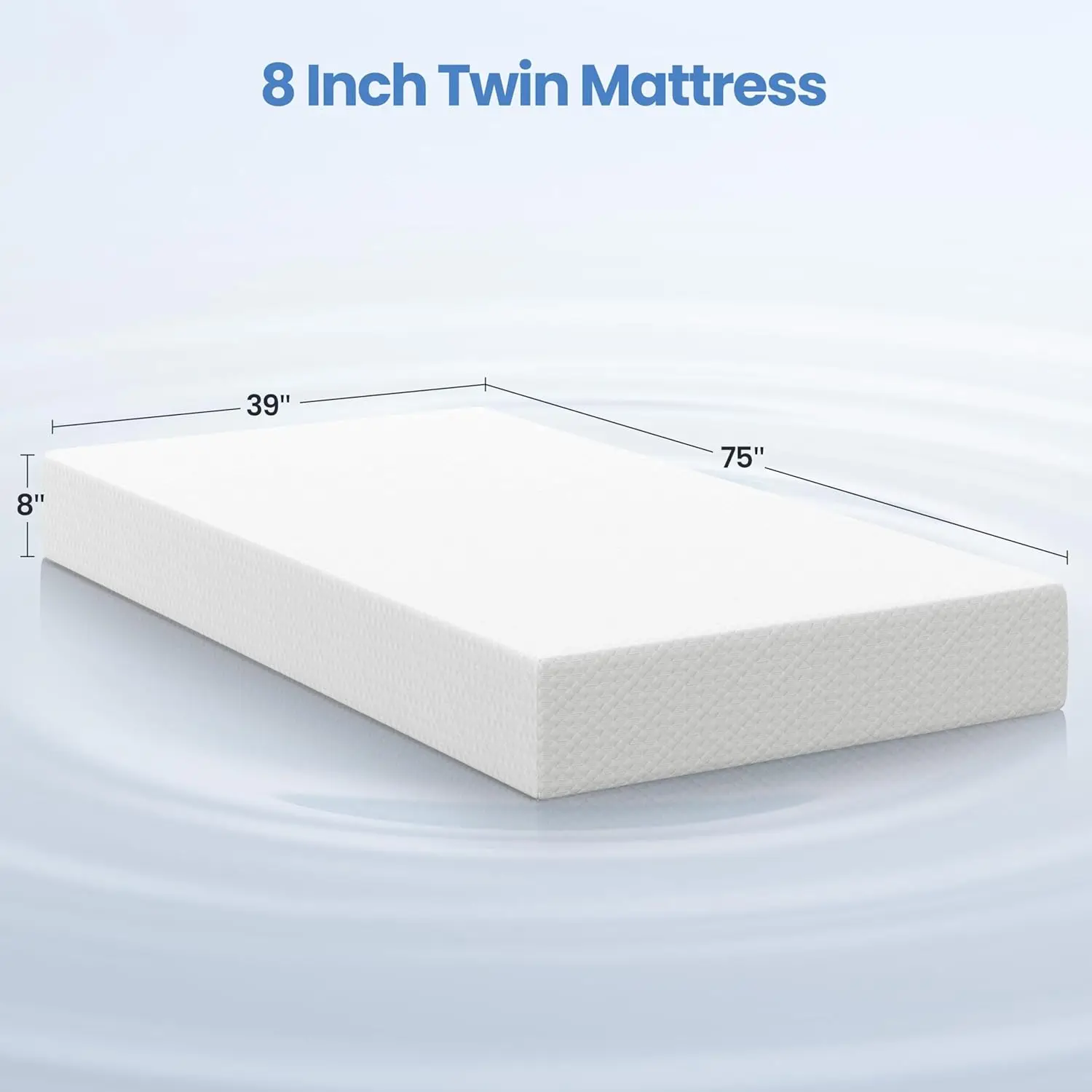 Experience ultimate comfort and safety with our premium twin mattress designed for a restful night’s sleep. Key features include: 1. **Safe and Healthy Materials**: This mattress is made without fiberglass, eliminating any risk of exposure to loose fibers for irritation-resistant sleep and easy maintenance. The skin-friendly knitted cover complies with OEKO-TEX STANDARD 100, and the foam is CertiPUR-US certified, ensuring a comfortable and healthy rest environment every night. 2. **Durable Multi-Layer Construction**: Featuring an 8-inch profile in twin size, this mattress has a breathable quilted fabric cover. It includes a 2-inch gel-infused memory foam layer that contours to your body to relieve pressure points. Below that, a 2-inch transition foam layer supports your curves, while a 4-inch durable base foam provides lasting stability for enhanced durability. 3. **Enhanced Comfort Design**: The three foam layers work together seamlessly to deliver smoother firmness transitions and improved body contouring. This design promotes dual coolness and freshness, better motion isolation, and even pressure distribution for long-lasting comfort throughout the night. 4. **Body-Conforming Support**: With a plush memory foam layer that fills gaps around your body, this mattress cradles key pressure areas like shoulders and hips to promote optimal spinal alignment. It has passed rigorous tests including a 100,000-cycle rolling test and a 30,000-time hip simulation static pressure test, offering a medium-firm feel ideal for various sleep preferences. 5. **Cooler and Fresher Sleep Experience**: Infused with cooling gel in the upper two layers to effectively draw heat away from your body, this mattress helps you fall into deep sleep quickly. Additionally, the green tea infusion adds a subtle refreshing scent that creates a calming atmosphere conducive to relaxation. This mattress is perfect for those seeking quality sleep solutions with advanced features tailored for comfort and health.