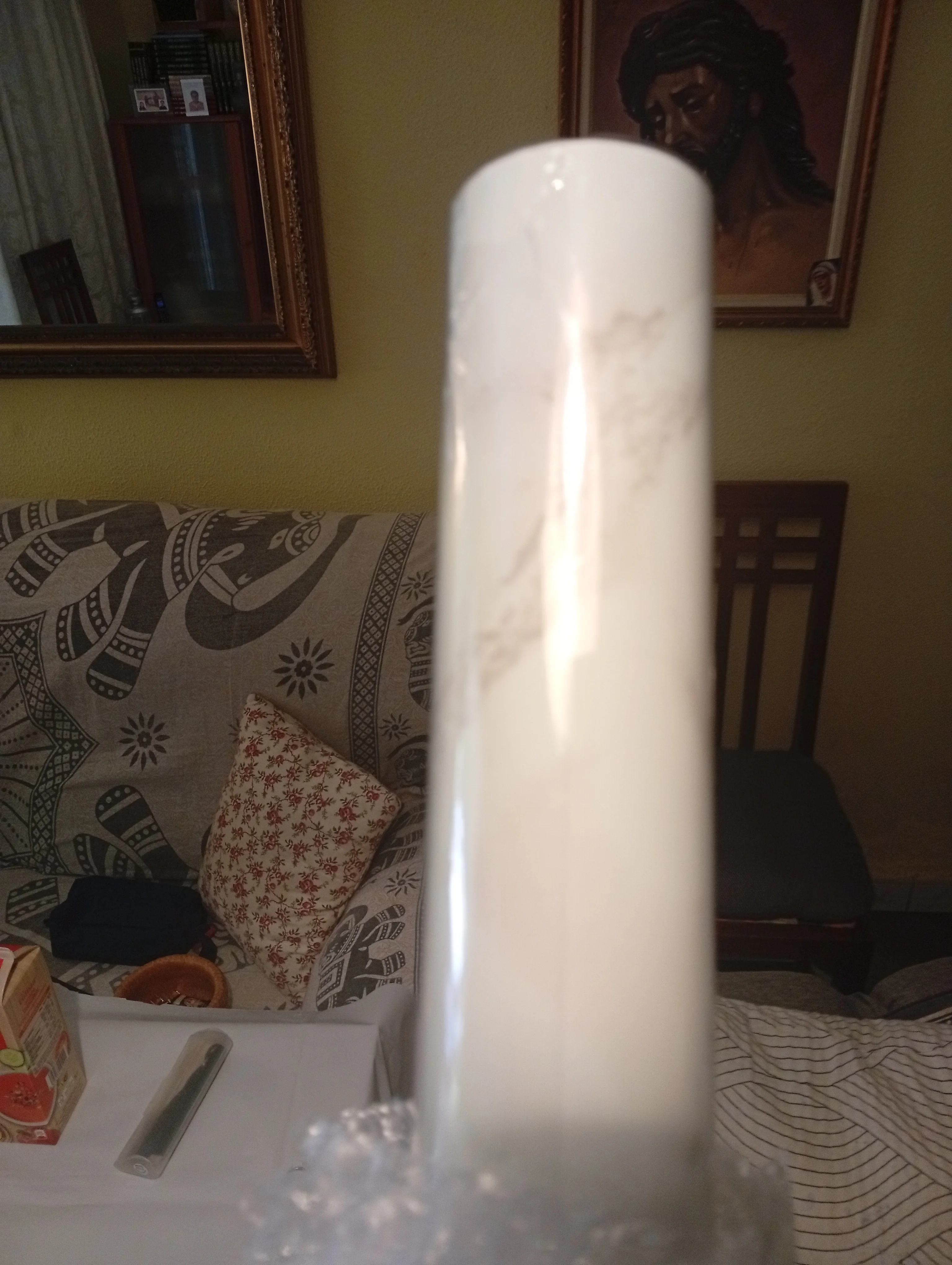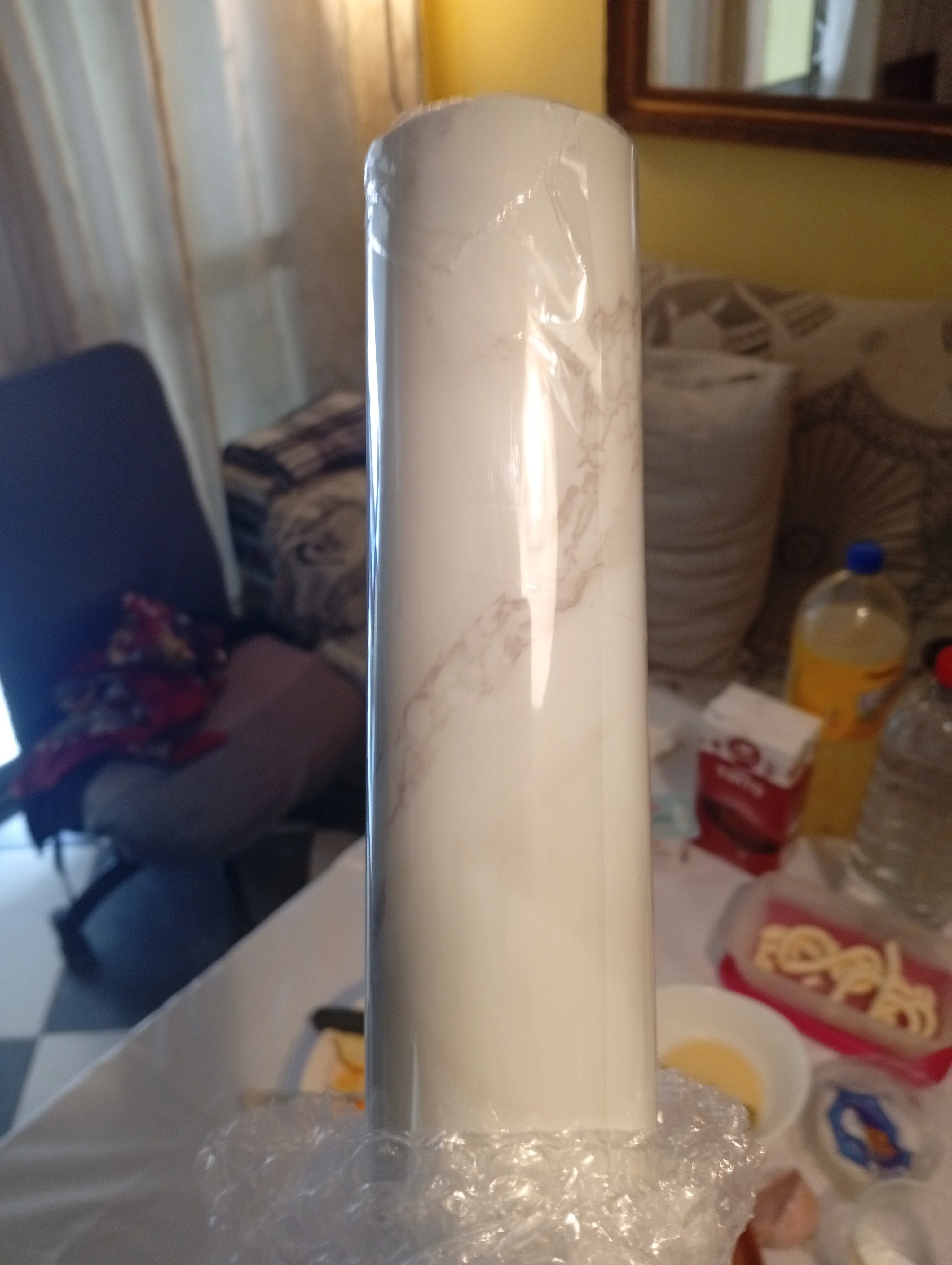 10 meters of adhesive vinyl in aged classic marble finish, it is thin in its thickness and waterproof, I think it will look spectacular and it looks very easy to apply and install.