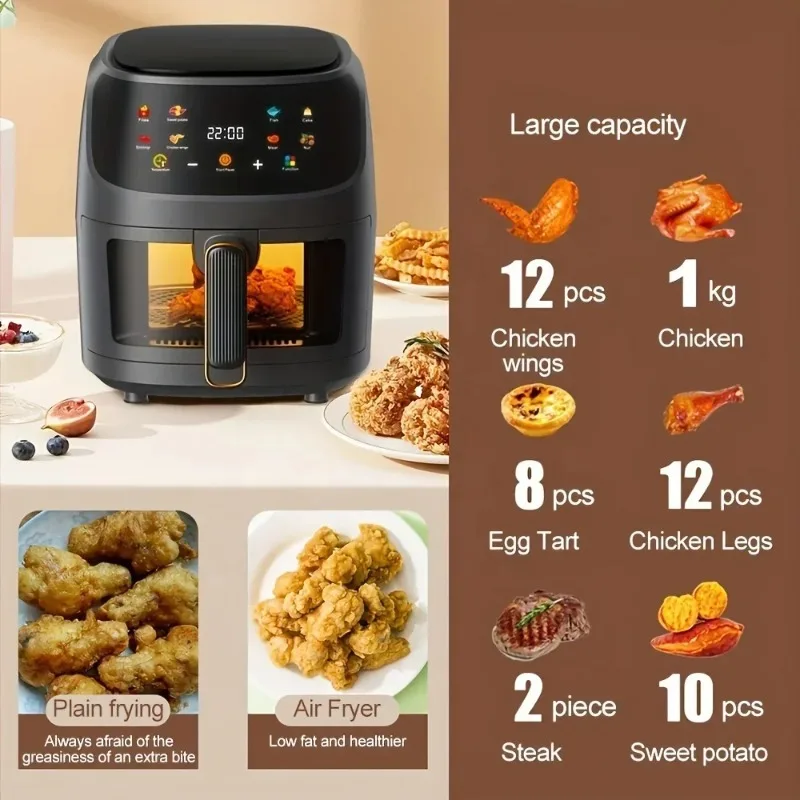 8L Intelligent Air Fryer Multifunctional Household Large Capacity Air Fryer Visual Oil-Free Oven Convection Efficient Meals