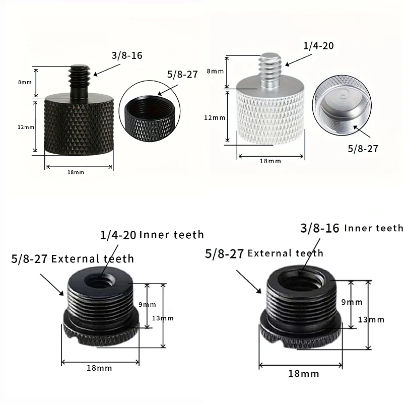 18 reviews for 8pcs a set Mic Stand Thread Adapter Set 1/4,3/8 Male to 5/8 Female Microphone stand fixing Screw Adapter Transfer