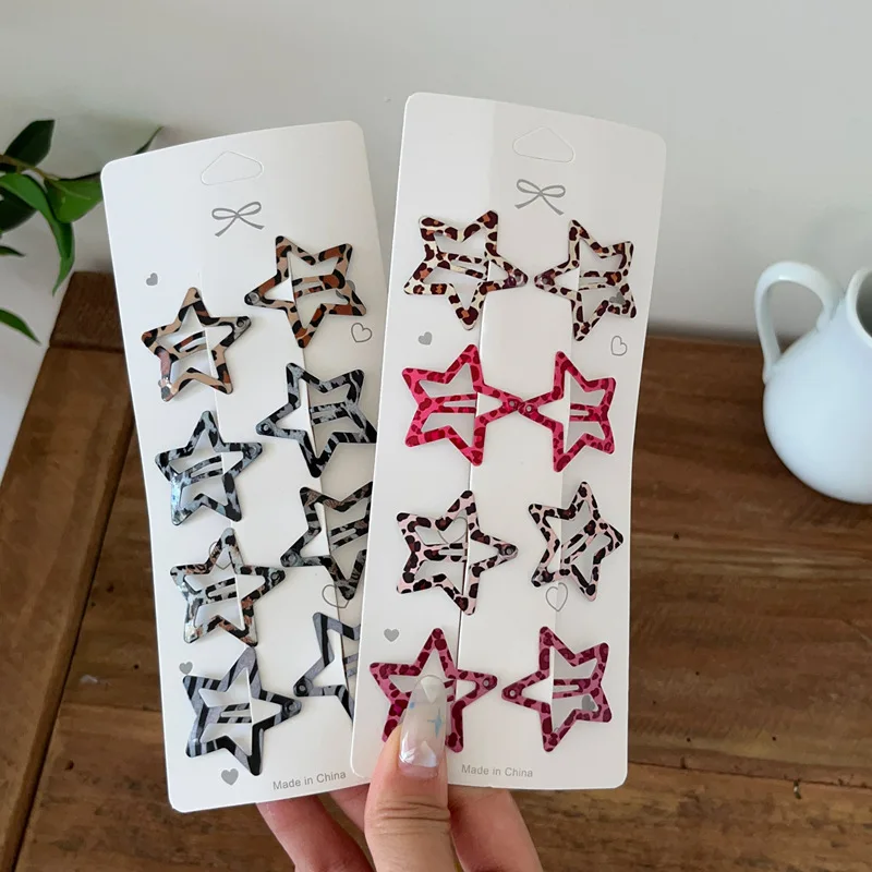 8pcs/set Leopard Print Hair Clips for Women Girls Vintage Geometric Star BB Clips Bangs Hairpins Barrettes Hair Accessories Set