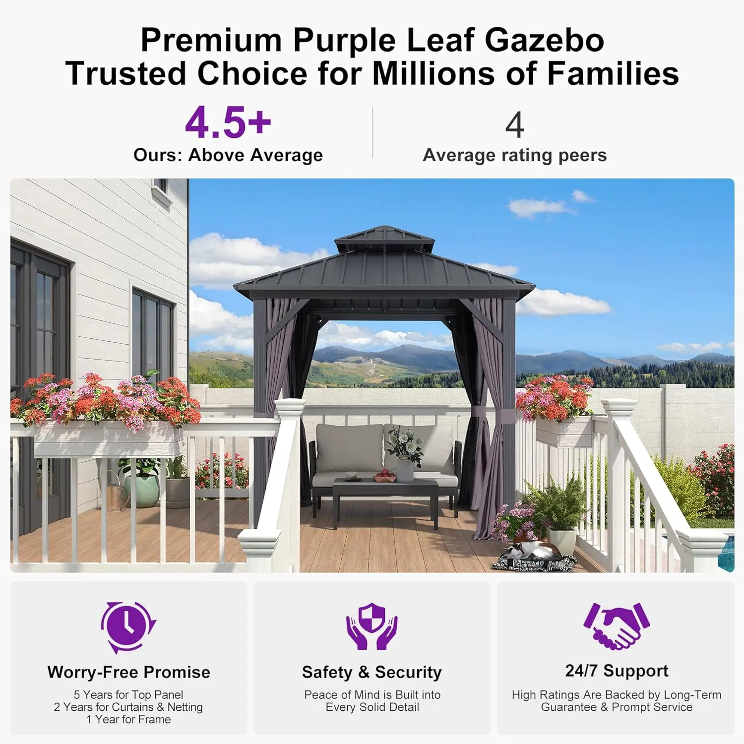 8’x8′ Hardtop Gazebo All-Weather Galvanized Steel Double Roof Outdoor Patio Garden Gazebo Including Netting and Curtains Grey