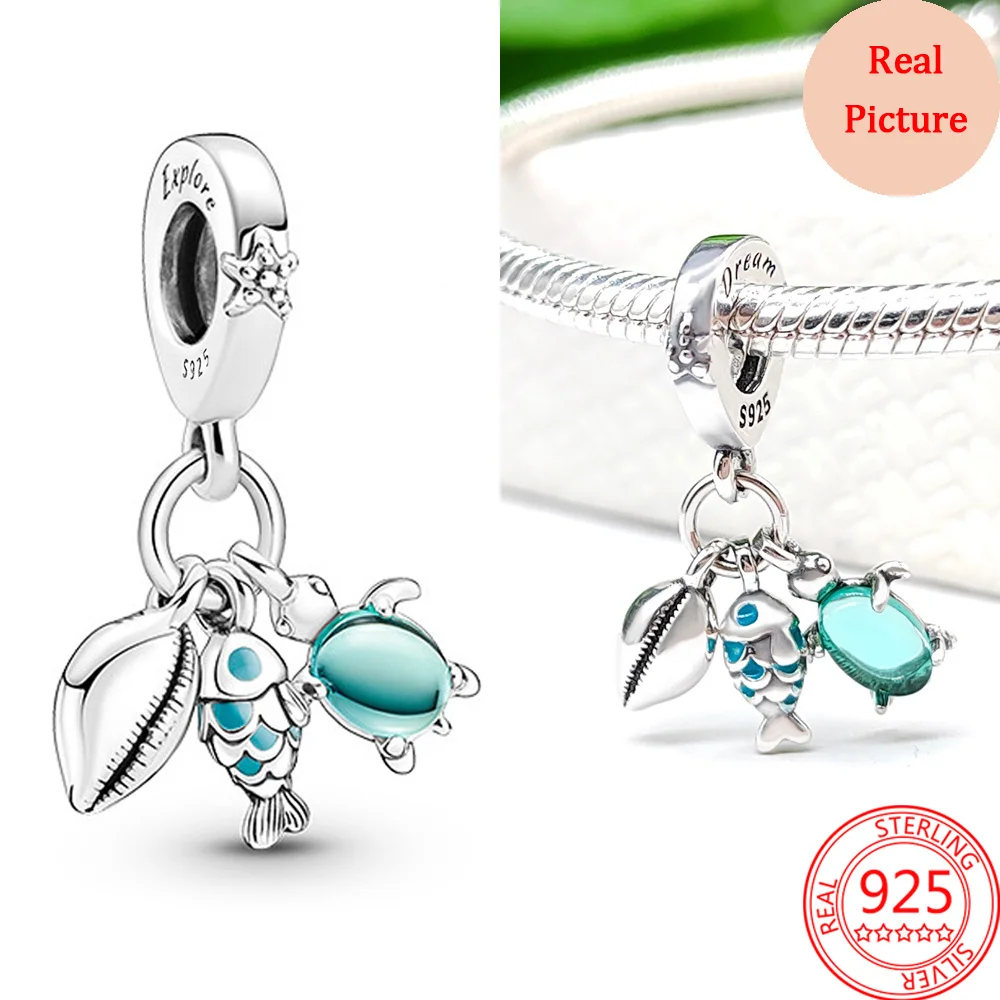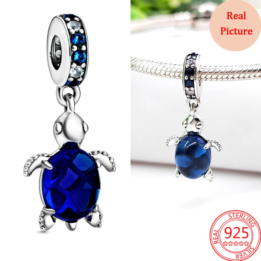 925 Silver Plated Colorful Accessories Jewelry Women Murano Glass Pink And Blue Sea Turtle Dangle Charm Fit Brand Bracelet