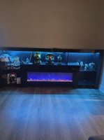 50” Electric Fireplace: Enjoy the warmth and ambiance of the 50 electric fireplace, perfect for creating a cozy atmosphere without the hassle of traditional fireplaces, while easily accommodating TVs up to 100 inches.