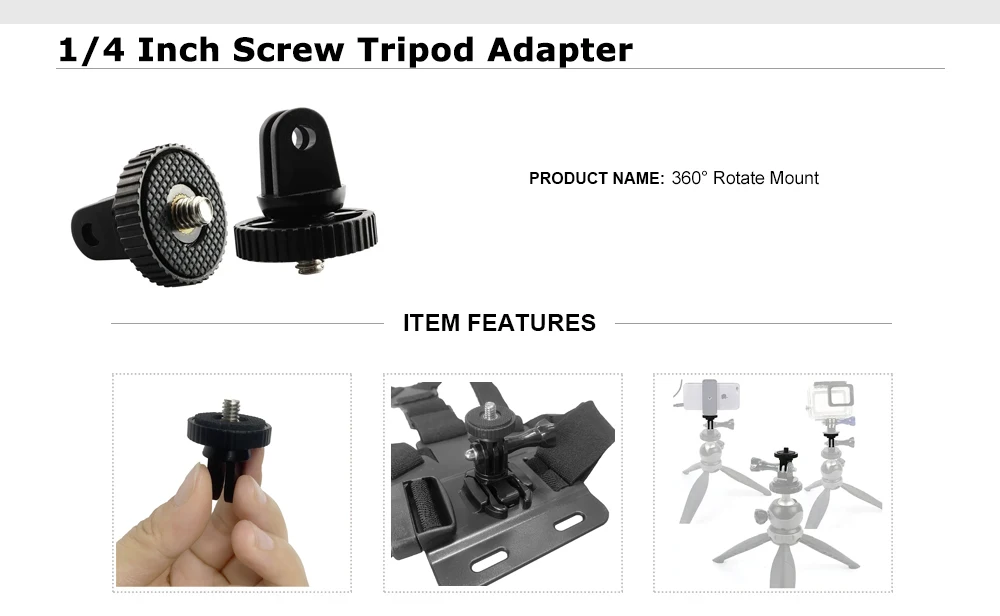 | Compatible Action Camera Brand | DJI, yi, Insta360, Sjcam, SOOCOO, EKEN, GoPro, AKASO, axnen, Runcam, FeiyuTech, Victure, Apeman |