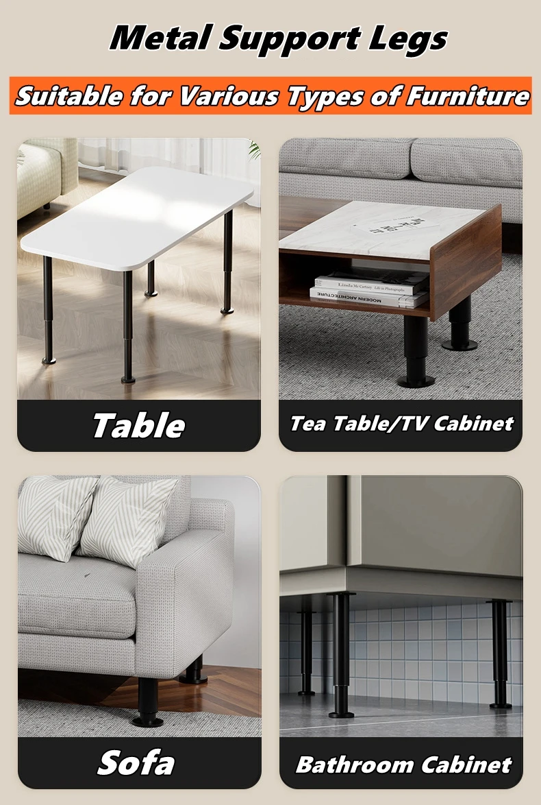 Adjustable Height Furniture Support Legs for Bed Frame, Metal Adjustable Furniture Legs for Bed/Sofa/Cabinet/Couch/Table