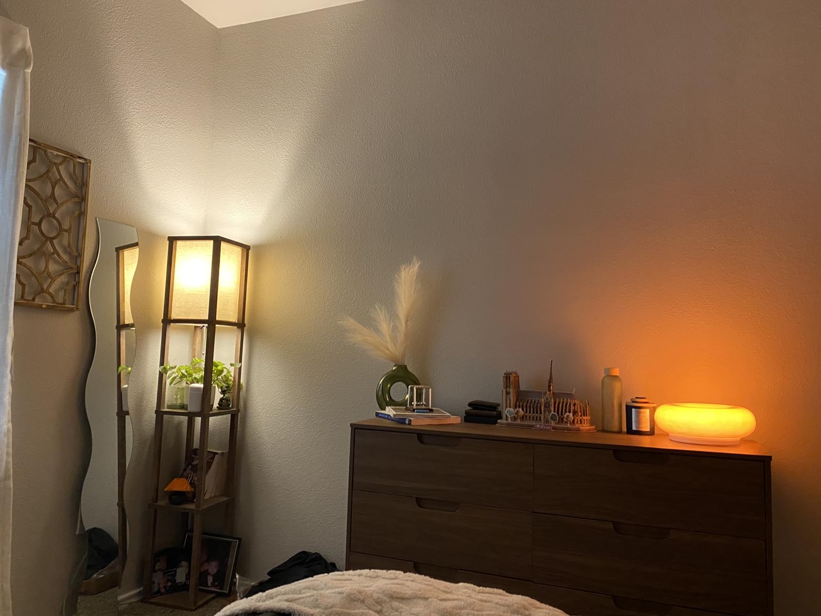 About the lamp: when it’s on it’s really nice, but turned off looks really baaad… it’s very light bc it’s made from plastic.
