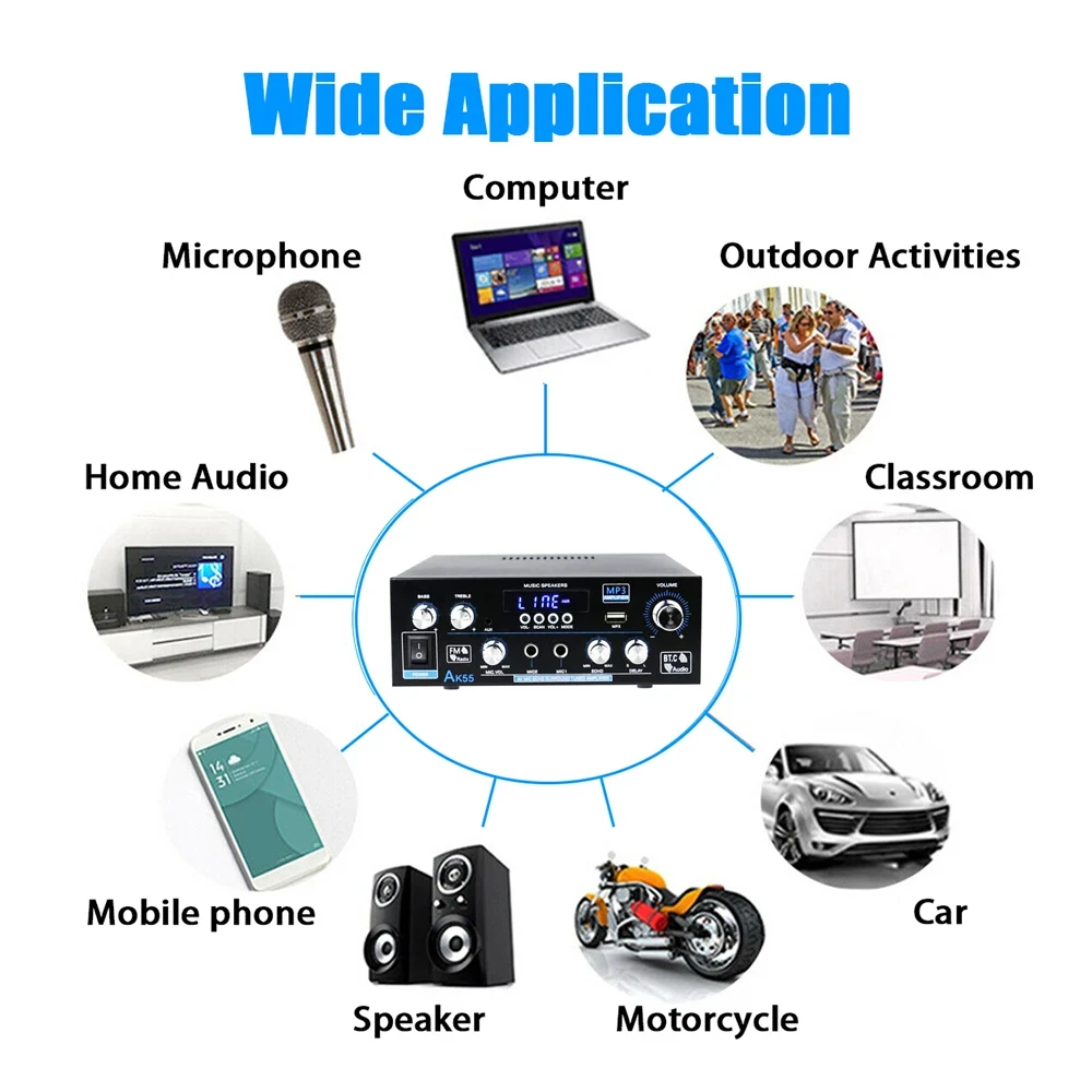 16 reviews for AK55 HiFi Digital Amplifier Channel 2.0 Bluetooth Surround Sound AMP Max Power 90Wx2 Speaker for Home Car BT 5.0 Audio AMP