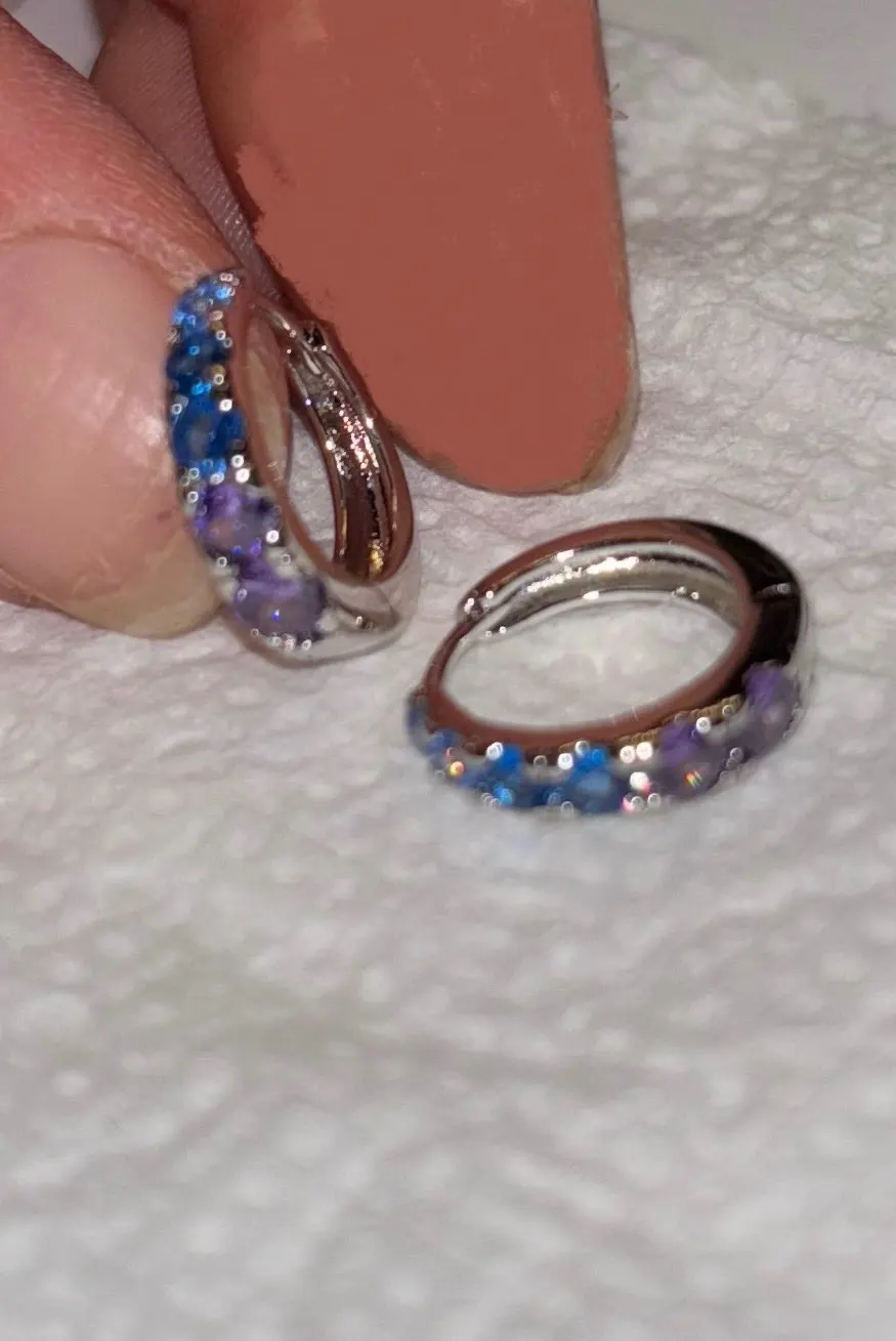 Very pretty medium size 925 sterling silver hoop earrings with graduating colors of blue zirconia.