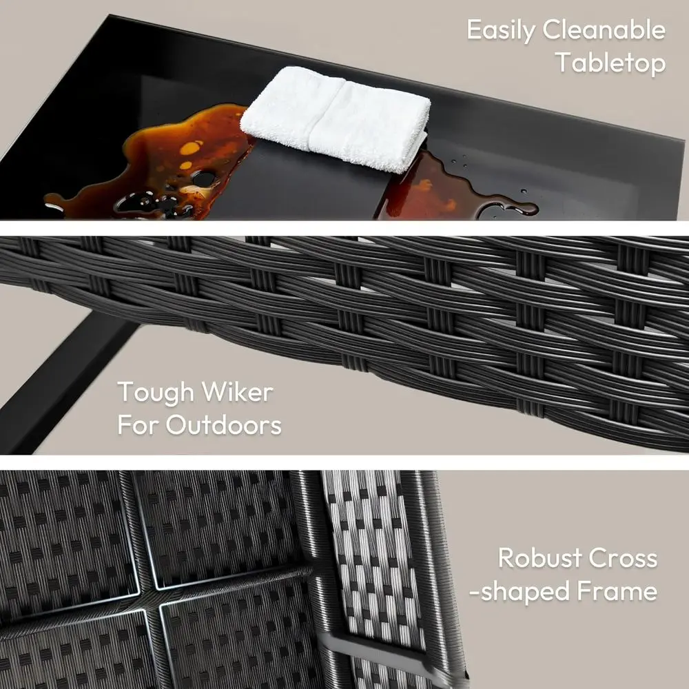 Made from UV-resistant, handwoven PE rattan over a powder-coated steel frame, this set is designed to withstand sun, rain, and various weather conditions without cracking or fading. Built for long-term outdoor use with exceptional resilience.