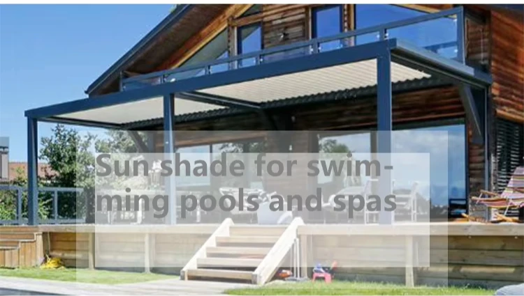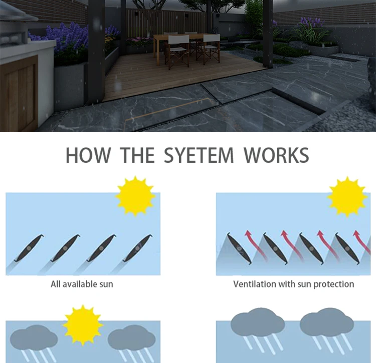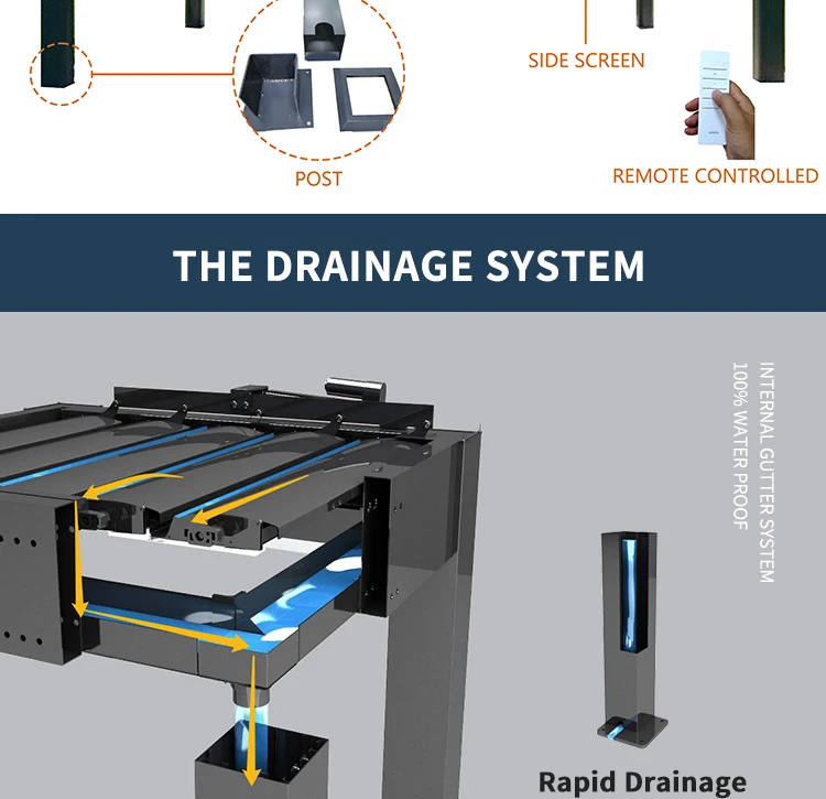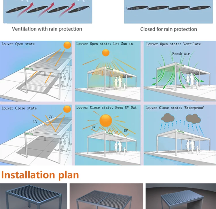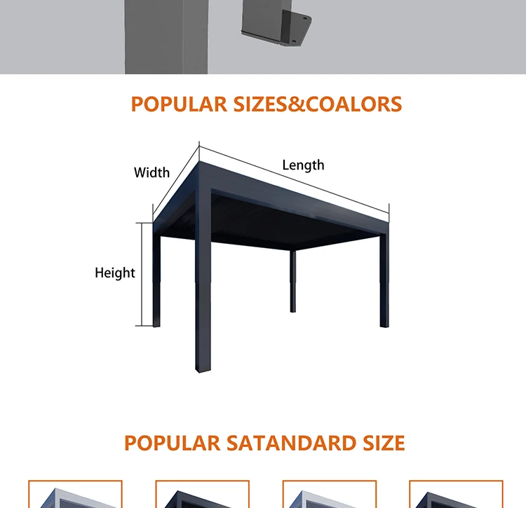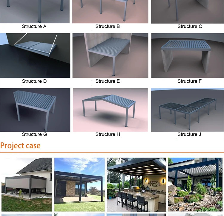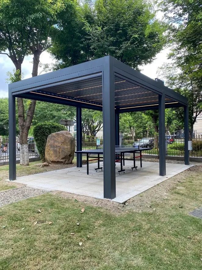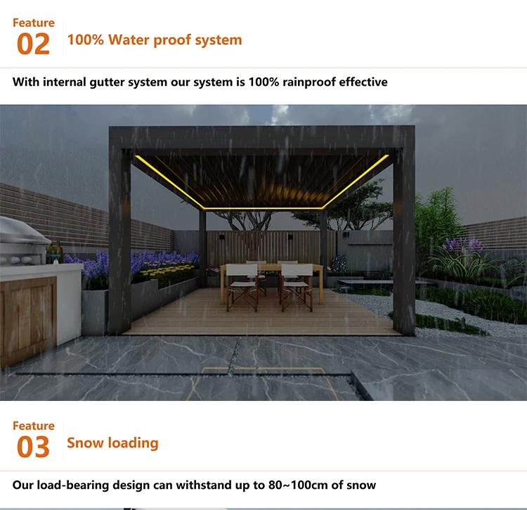 Aluminum pergola, rainproof, electrically adjustable gazebo, electric louvered awning, outdoor patio sunshade.