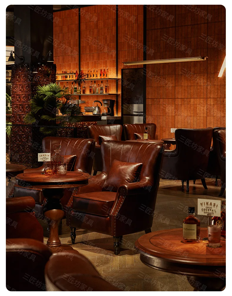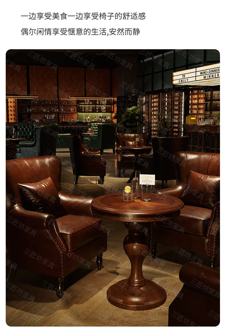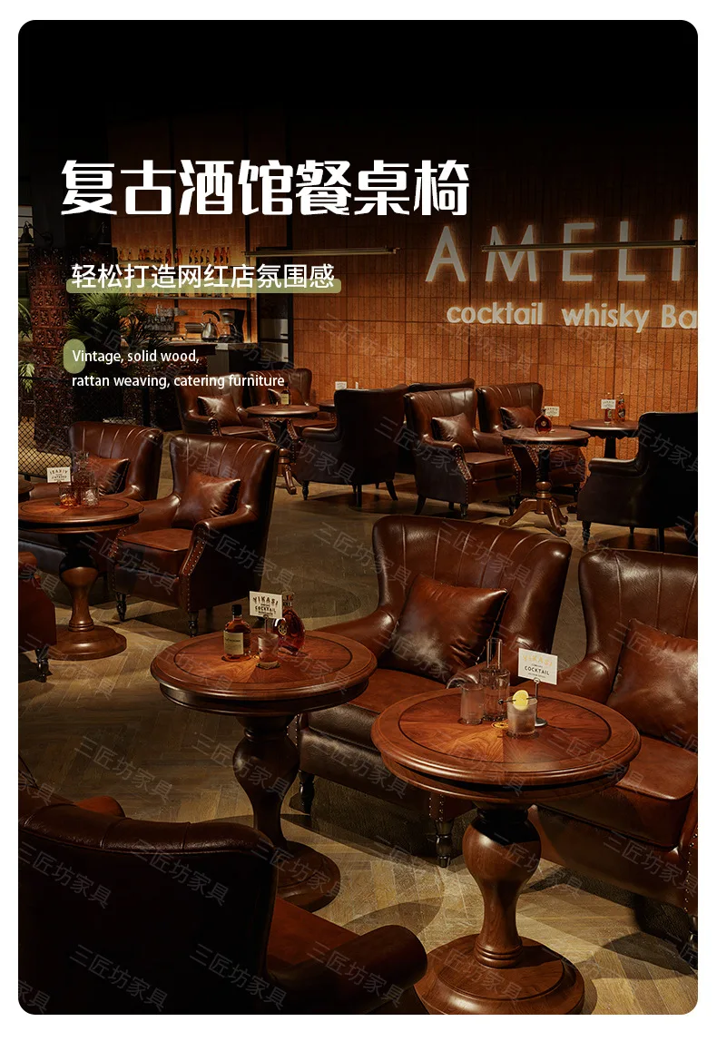American Retro Style Bar Sofa Chair Clear Bar Small Restaurant Commercial Table and Chair Combination Single Chair