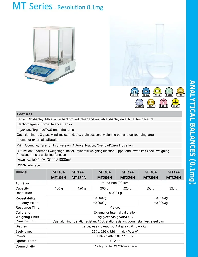 [0.0001g Accuracy] True Electromagnetic Force Analytical Balance 0.1mg with Auto Internal Calibration to achieve fast to get results in 5 seconds. It’s Accuracy up to 0.0001g, Repeatability ±0.2mg, Linearity:±0.2mg.