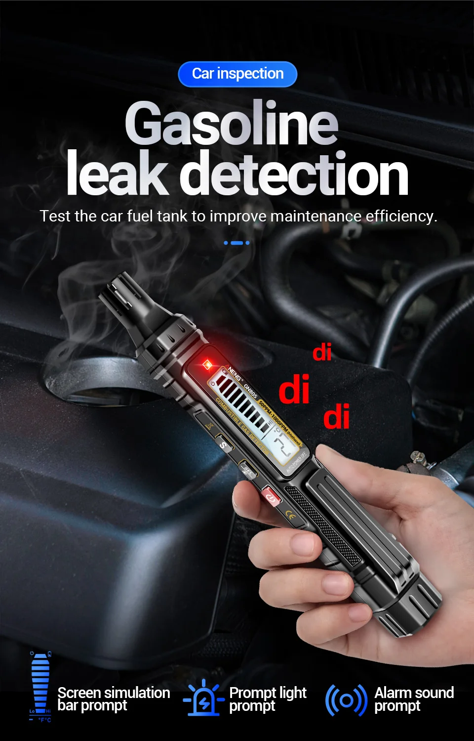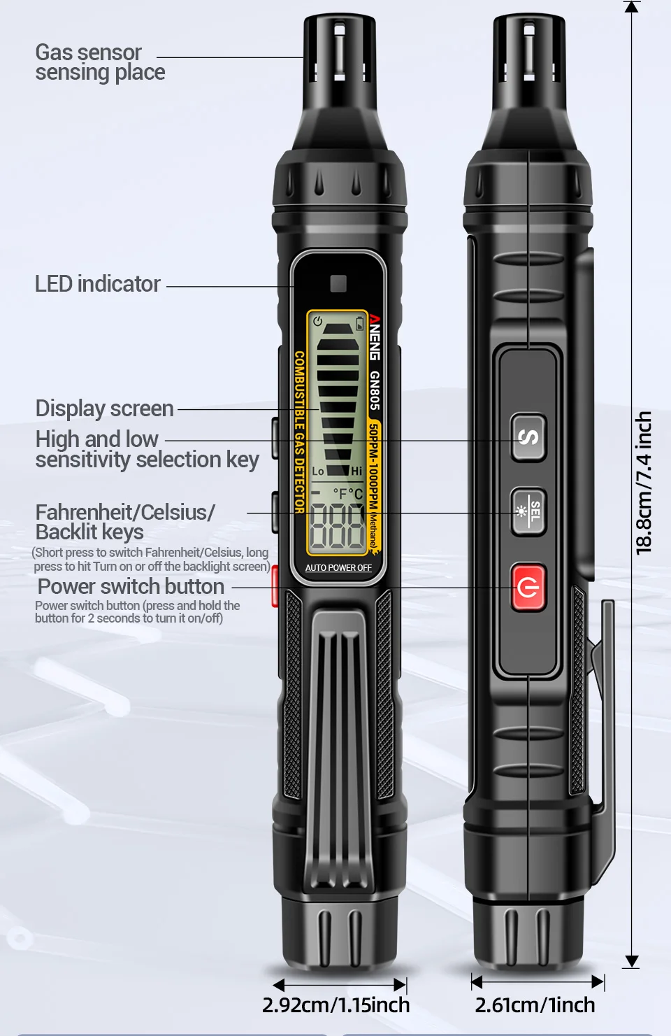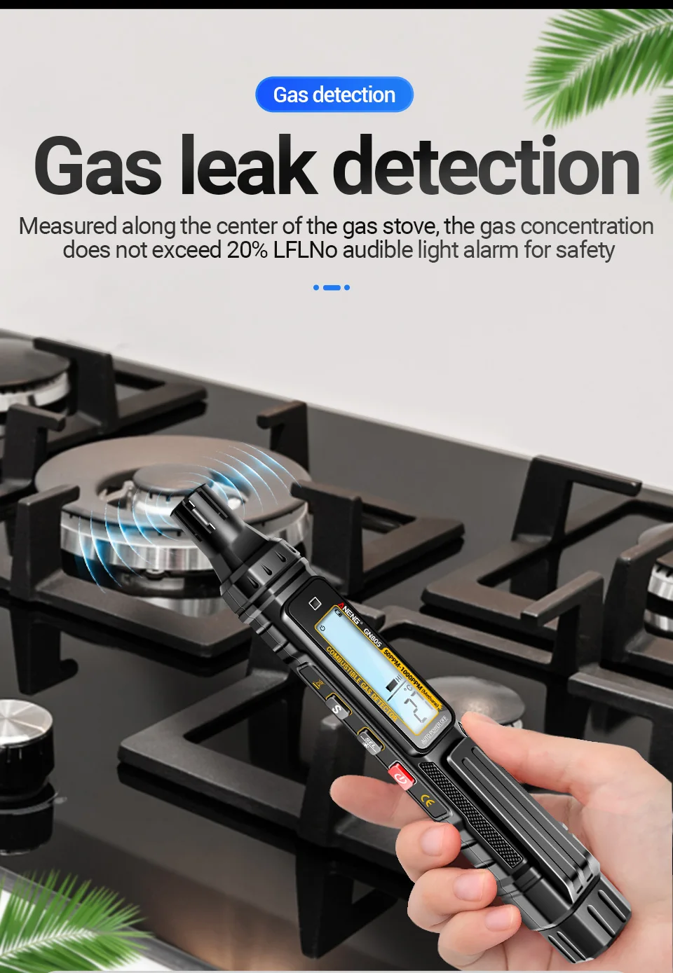 ANENG GN805 Combustible Gas Leak Detector 50~1000PPM Sound Alarm Gas-sensitive Semi-conduct Detector LCD Backight Screen Tools