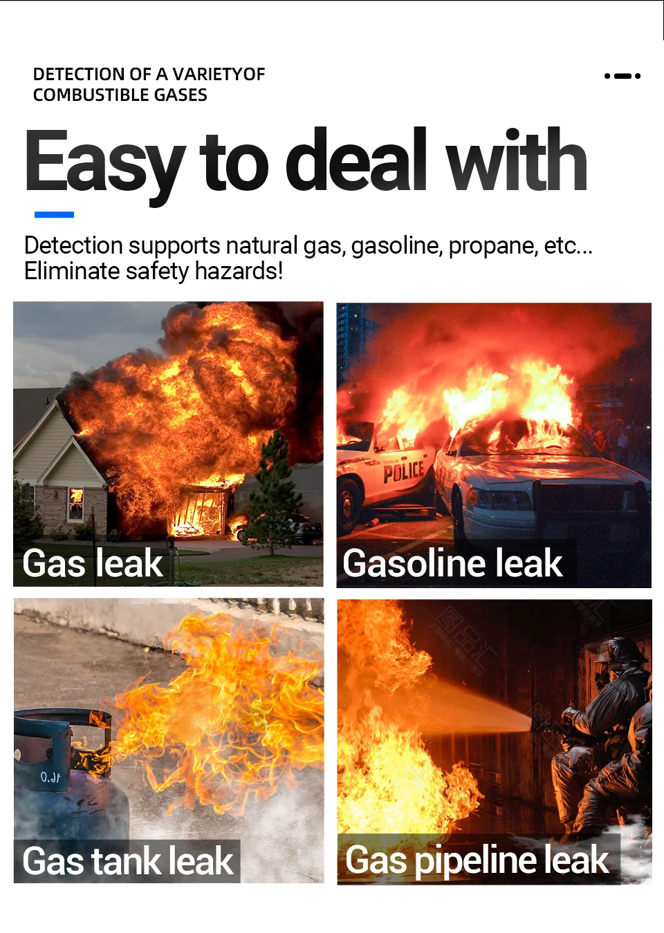 This instrument is a combustible gas leak detection device used to quickly and reliably detect leaks of combustible gases.