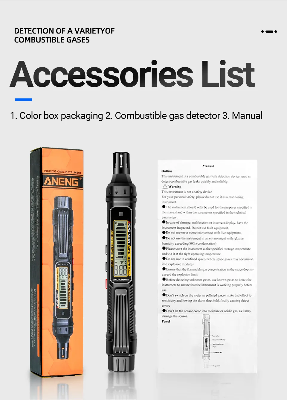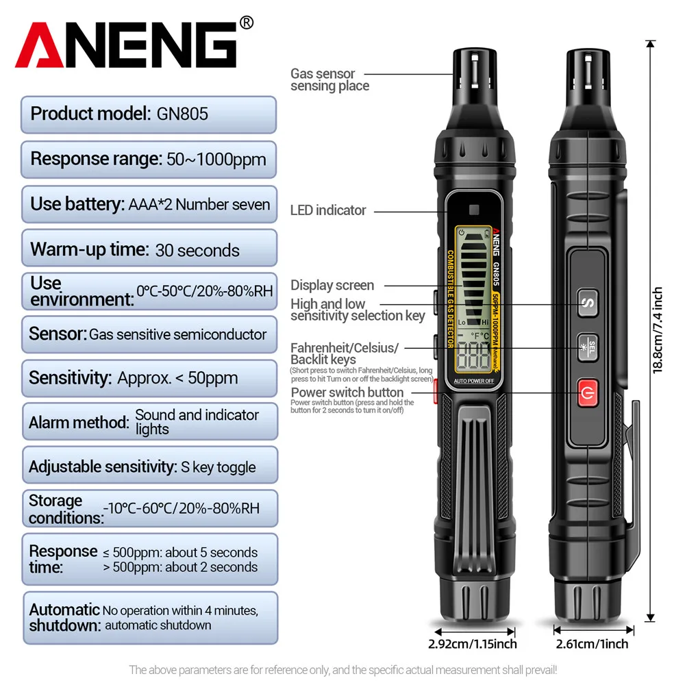 11 reviews for ANENG GN805 Combustible Gas Detector Gas Analyzer Gas Leakage Meter 50~10000PPM Sound Alarm Environmental Multiple Detectable
