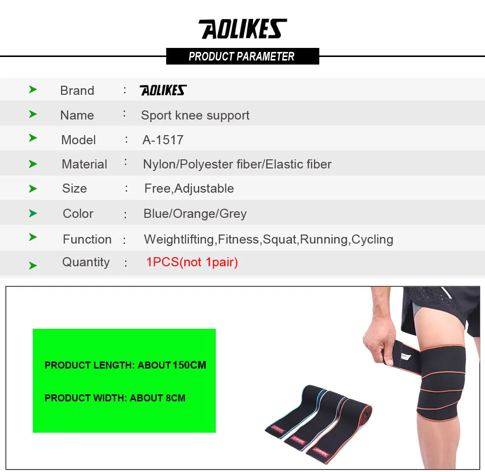 AOLIKES 1PCS Knee Bandage Compression For Arthritis Kneepad Meniscus And Ligament Gym Running And Basketball Gym Sport Knee Pads