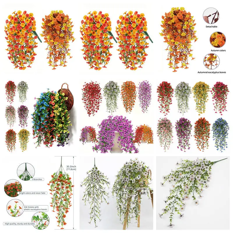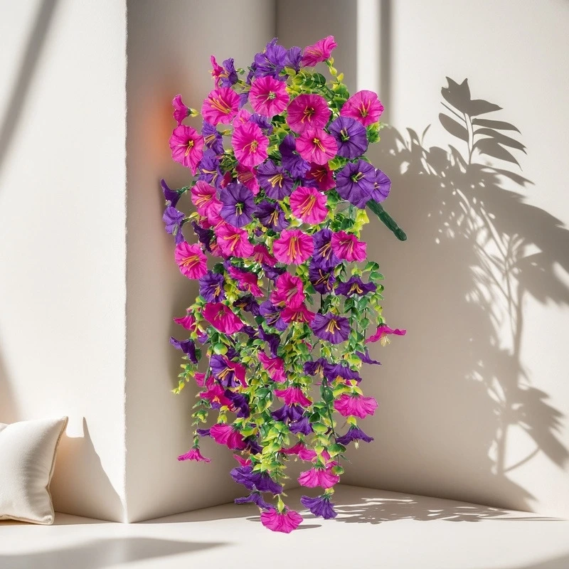 Artificial Hanging Flowers Morning Glory UV Resistant Yard Hanging Fake Plant Garden Wedding Party Decor Garden Balcony Supplies