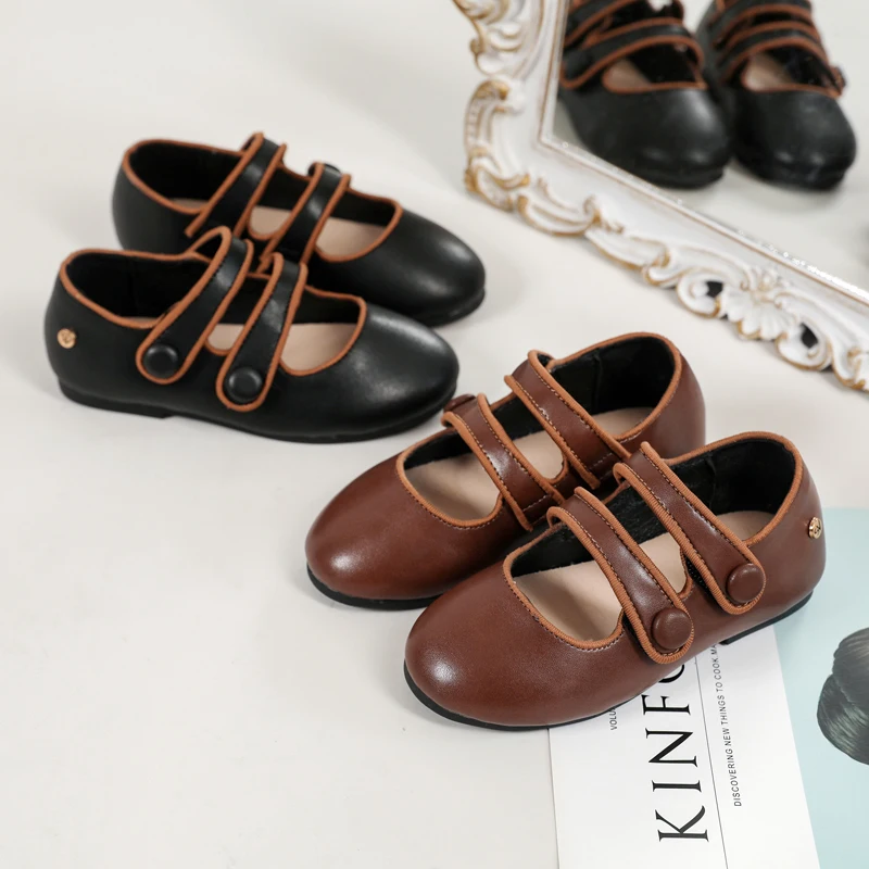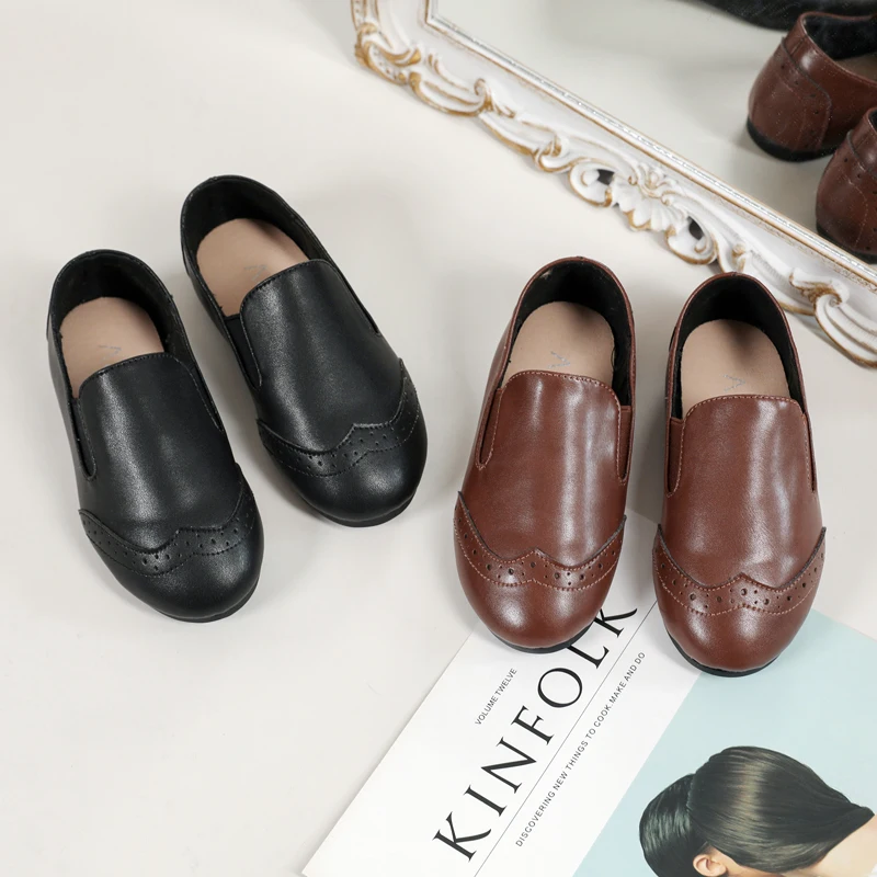 AS New Kids Shoes Children Leather Shoes Baby Girls Shoes Toddler Fashion Brown Flats Boys Moccasin Slip On Loafers Mary Jane