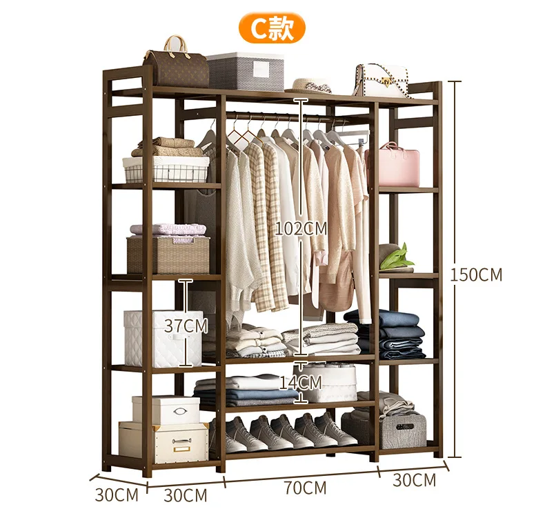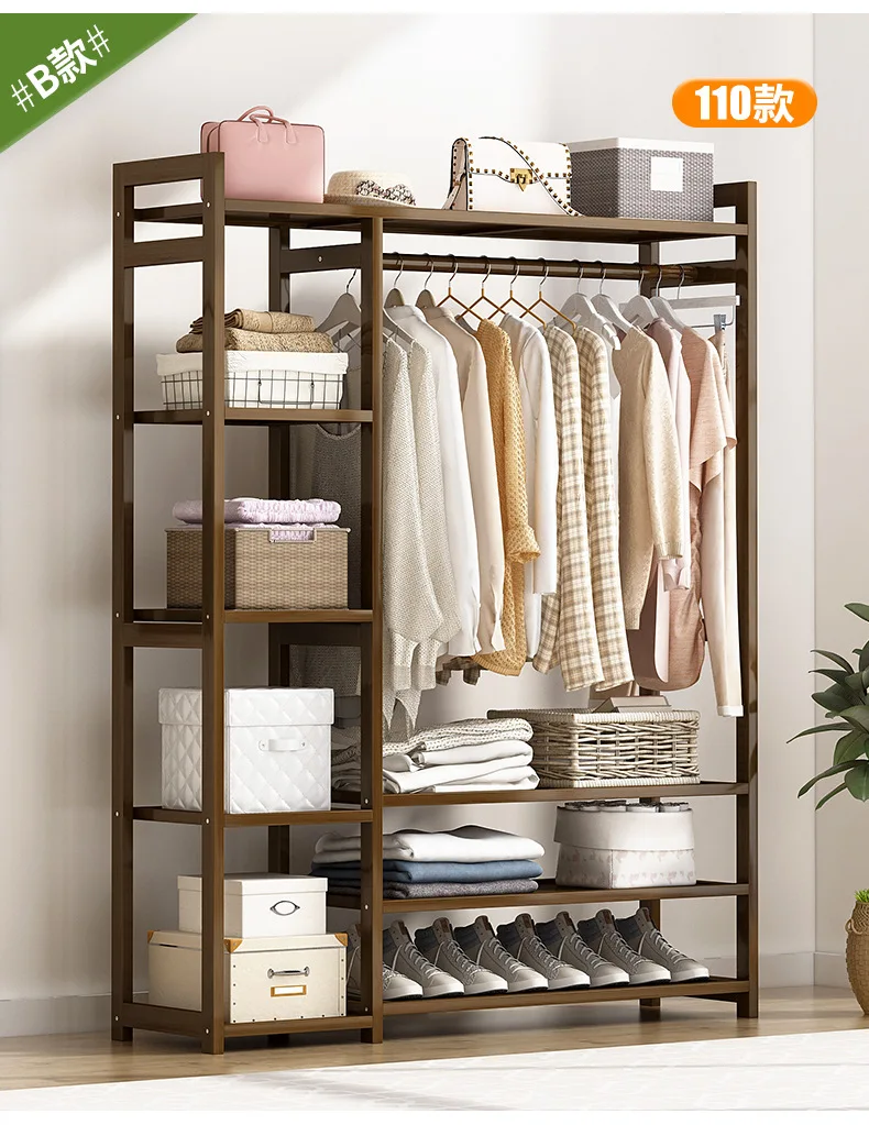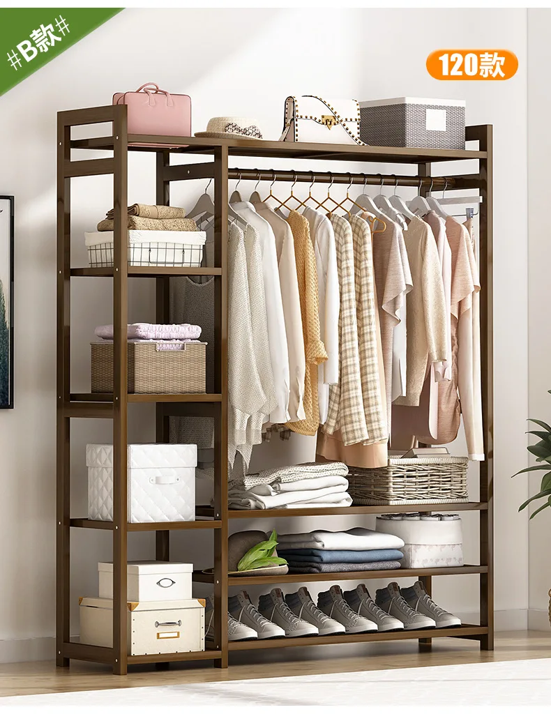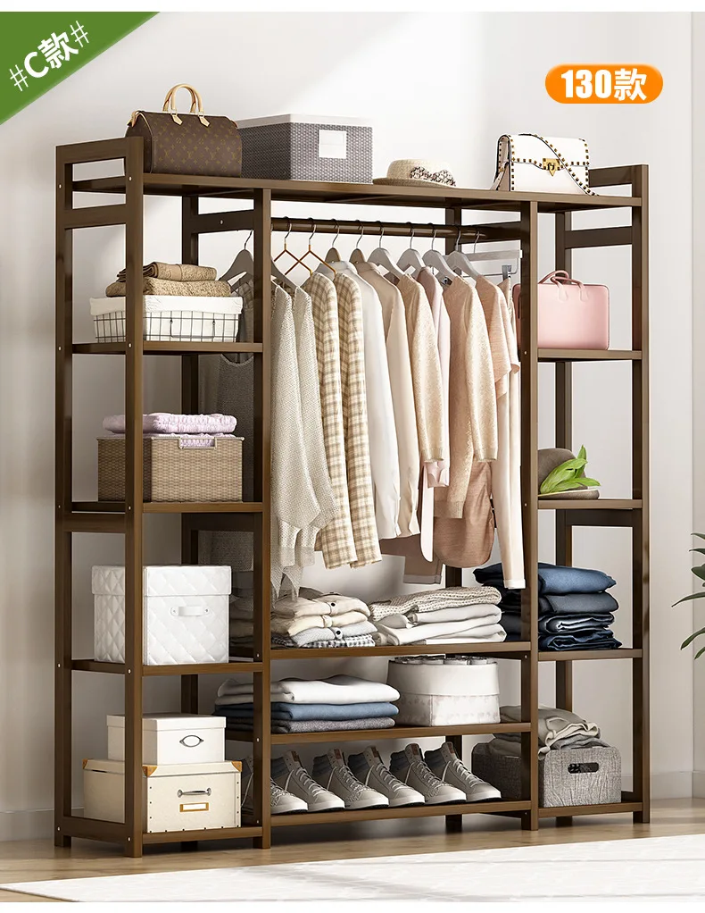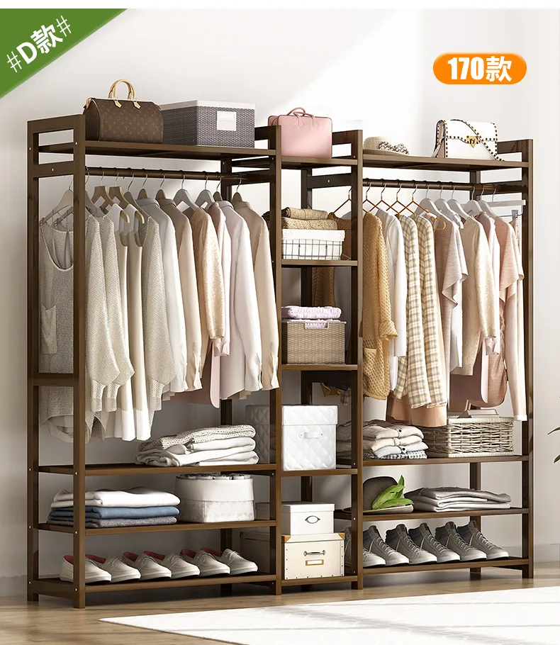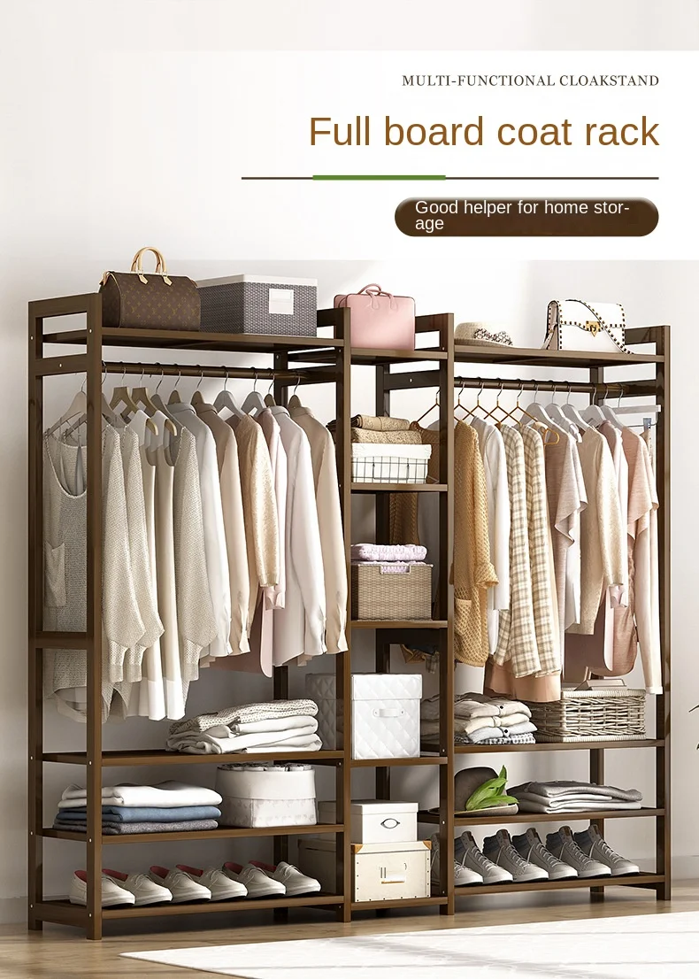 Assemble simple coat and hat rack simple modern solid wood bedroom floor hanger cabinet clothes bag storage household wardrobe