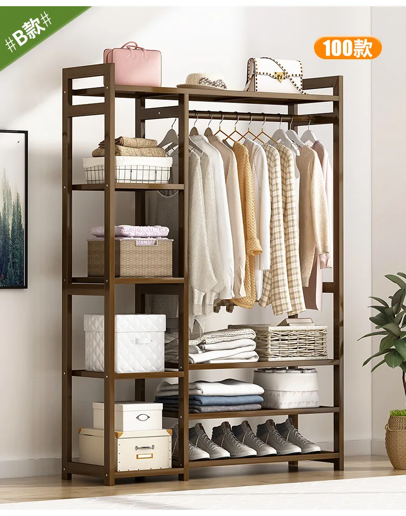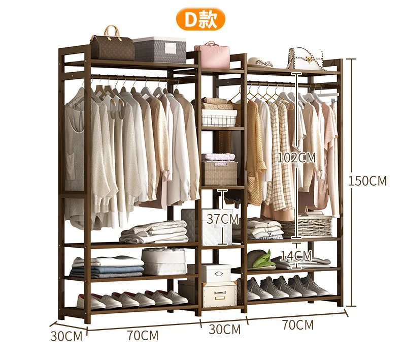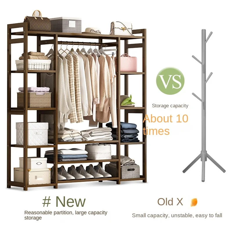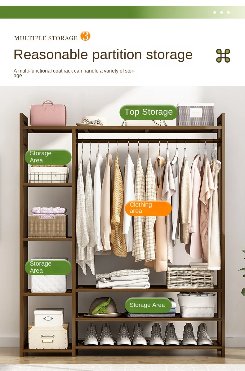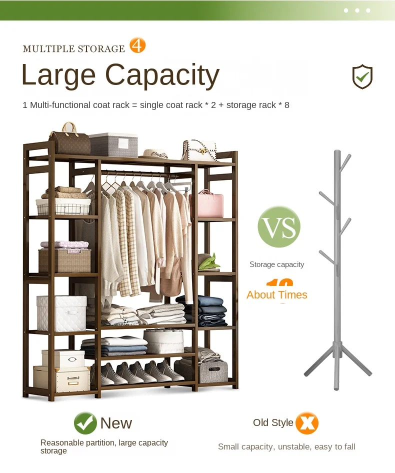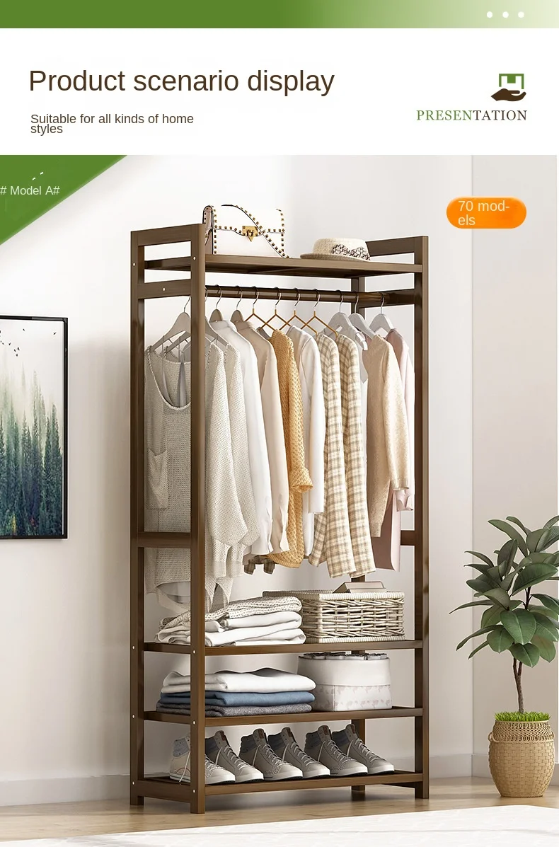 Assemble simple coat and hat rack simple modern solid wood bedroom floor hanger cabinet clothes bag storage household wardrobe