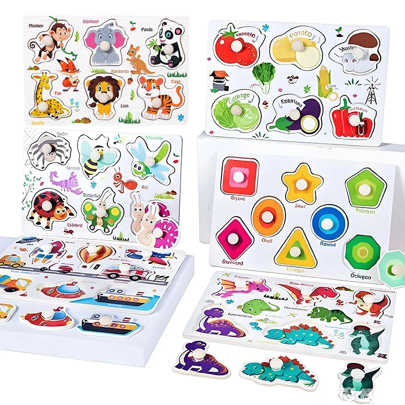| Montessori Puzzle Games | Baby Wooden Puzzle Peg |