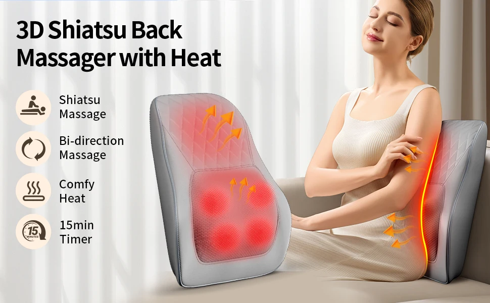 Back Massager Neck Massager with Heat 3D Kneading Massage Pillow for Relax Neck Back Shoulder Legs Gifts for Men Women Mom Dad