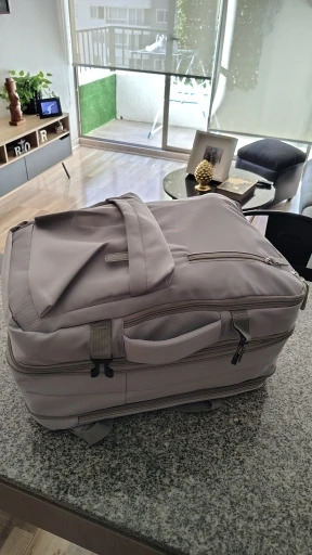 Excellent travel bag, contains many compartments, comfortable to carry, can be taken on the plane, good fabric