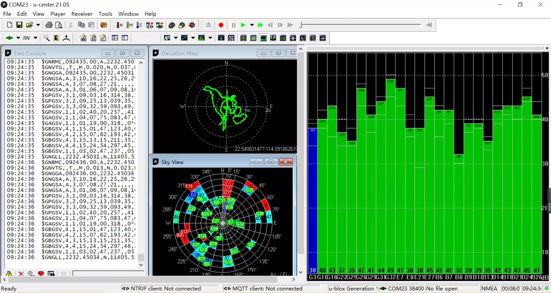 ♦ Signal testing sample: Testing environment: Open Sky, stationary