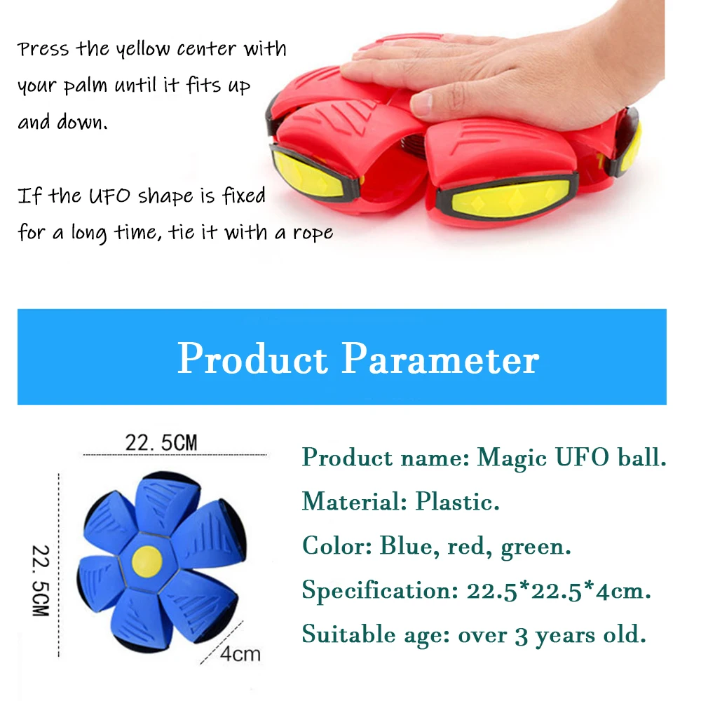 .♥【New Outdoor Toy】Portable creative UFO ball with magical lightweight flying saucer and magical functions, change freely from ball to saucer. Can be used as football, bowling etc. Allows the child to develop creative ideas and encourages spatial imagination. Help adults relieve stress, kill boring time and relax immediately