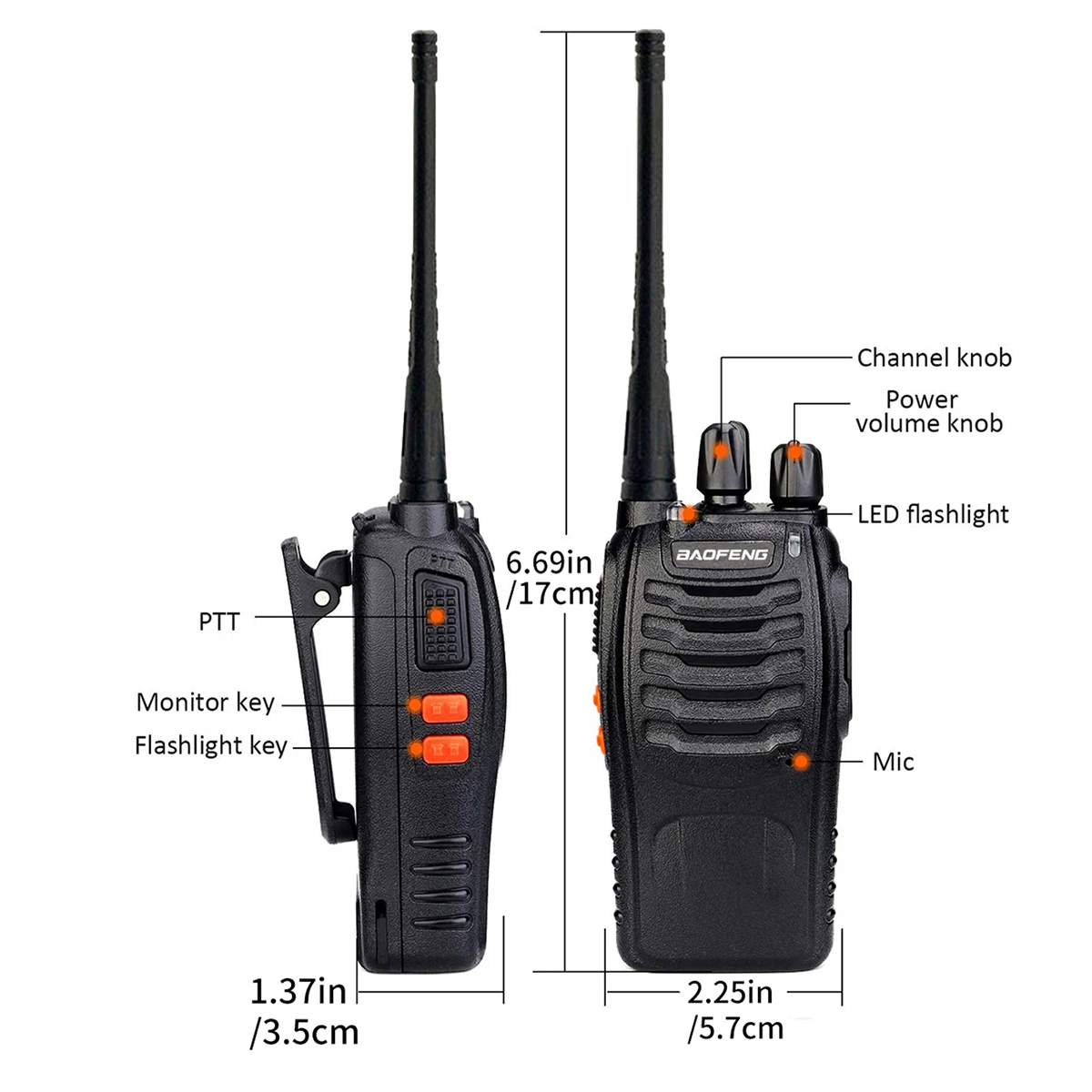 Gediversifieerde functies】 16 vooraf ingestelde kanalen kunnen worden geselecteerd door aan de knop op de 2-weg radio’s te draaien om elk kanaal binnen het frequentiebereik te selecteren;u kunt 50CTCSS-audio en 210 DCS-codes programmeren op elk geprogrammeerd kanaal. De tweewegradio’s hebben de functies VOX-stembesturing, scannen, alarm voor lage batterijspanning en nachtzaklamp, enz.