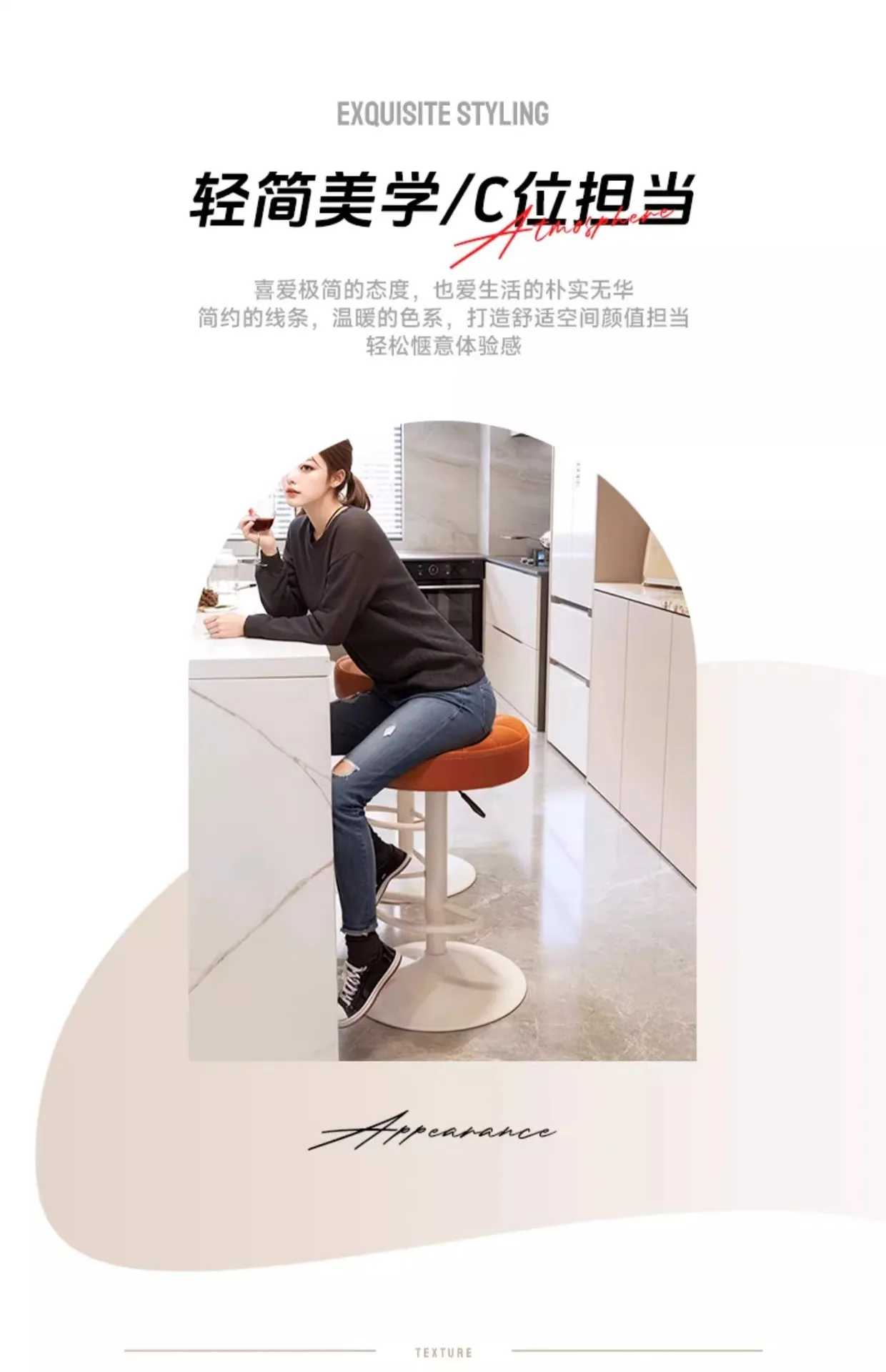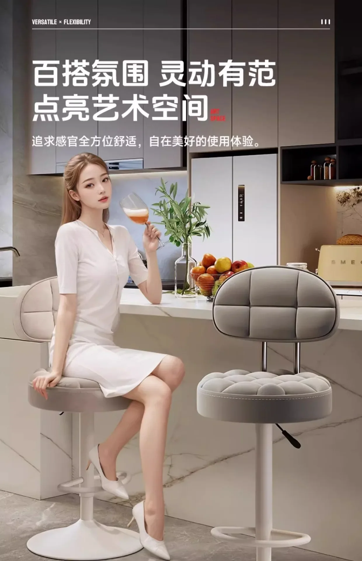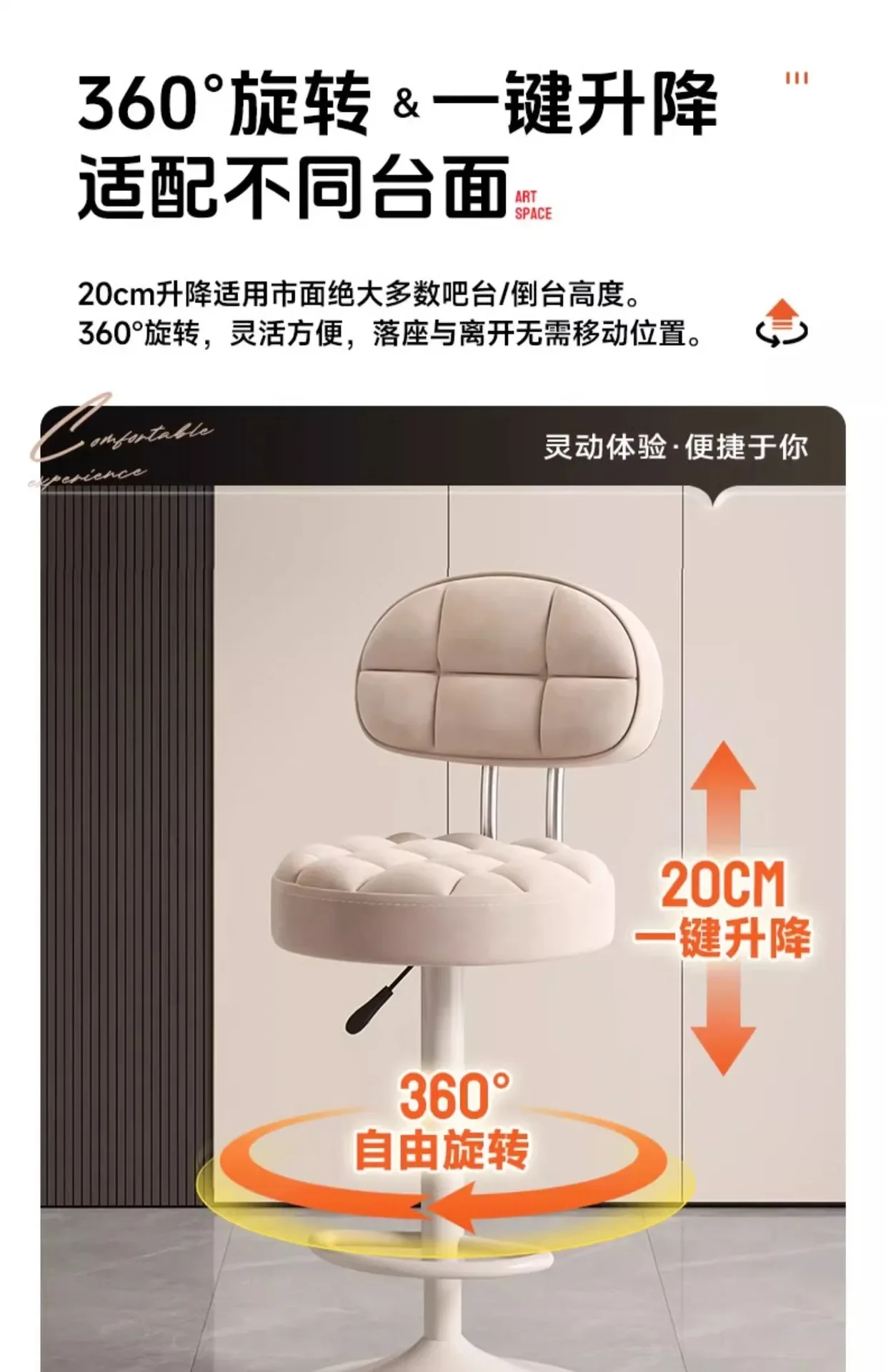 Bar chairs, modern minimalist stools, rotating bar stools, home bar chairs, counter round stools, rotating chairs