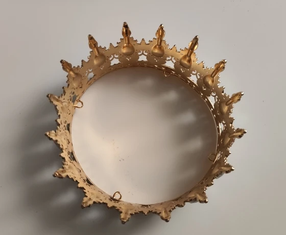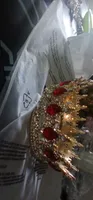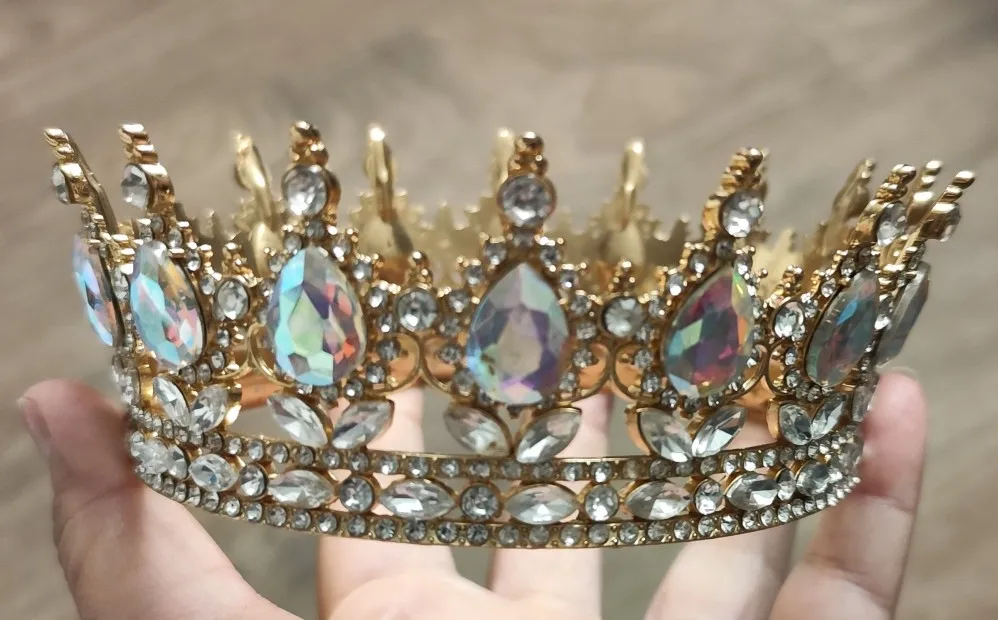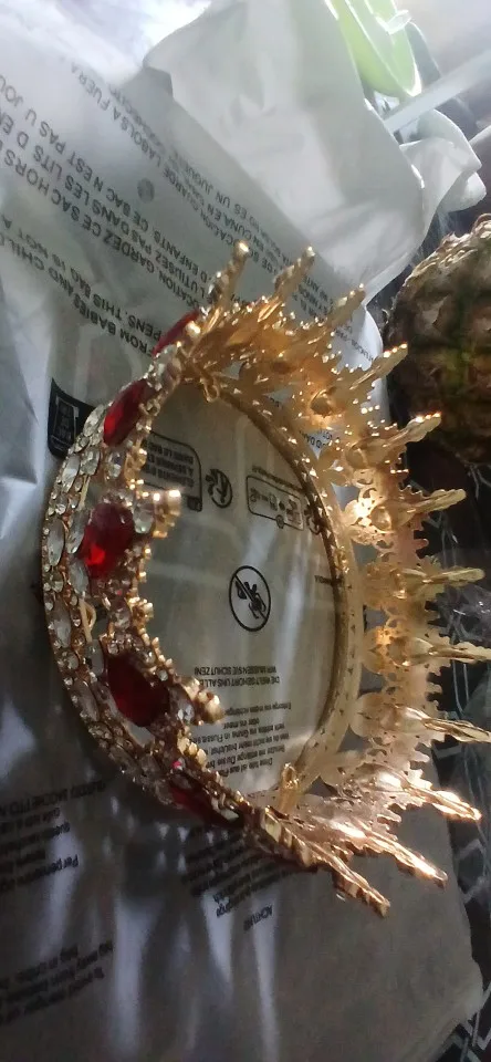 The crown arrived intact, well packaged, all the stones are in place. Arrived very quickly. Durable and heavy.