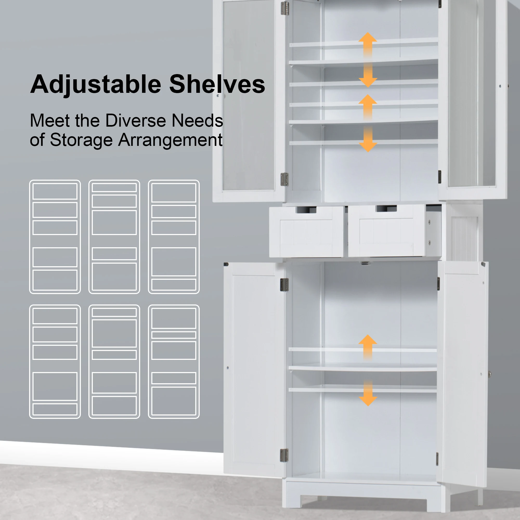 【Sturdy and Safe】 The Pantry are made of P2 class MDF boards and lead-free environmentally friendly paint, the special waterproof coating makes the surface smooth and smooth for easy cleaning. High-quality materials ensure this Pantry is more durable, stable, and long service time, keeping you and your family safe all time.