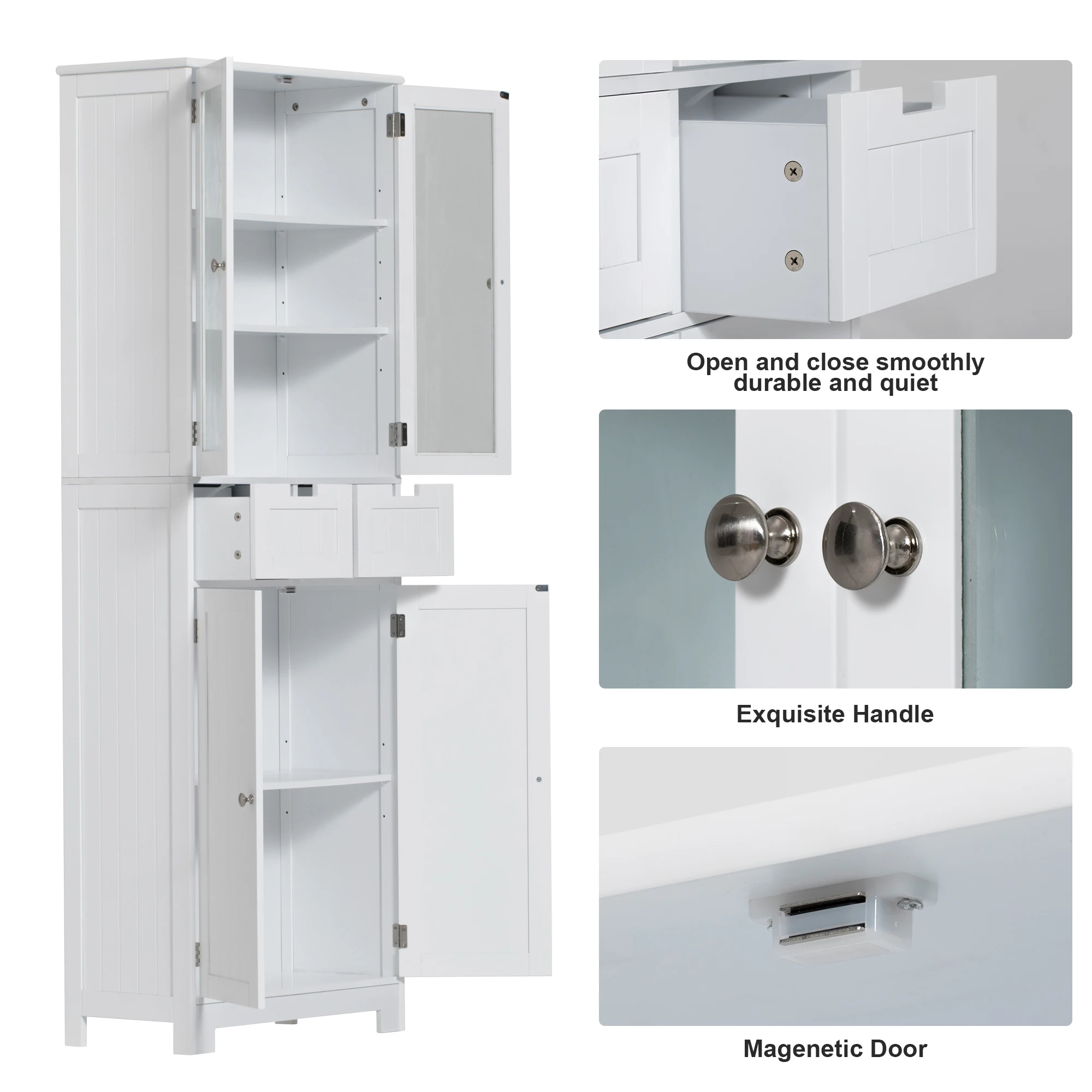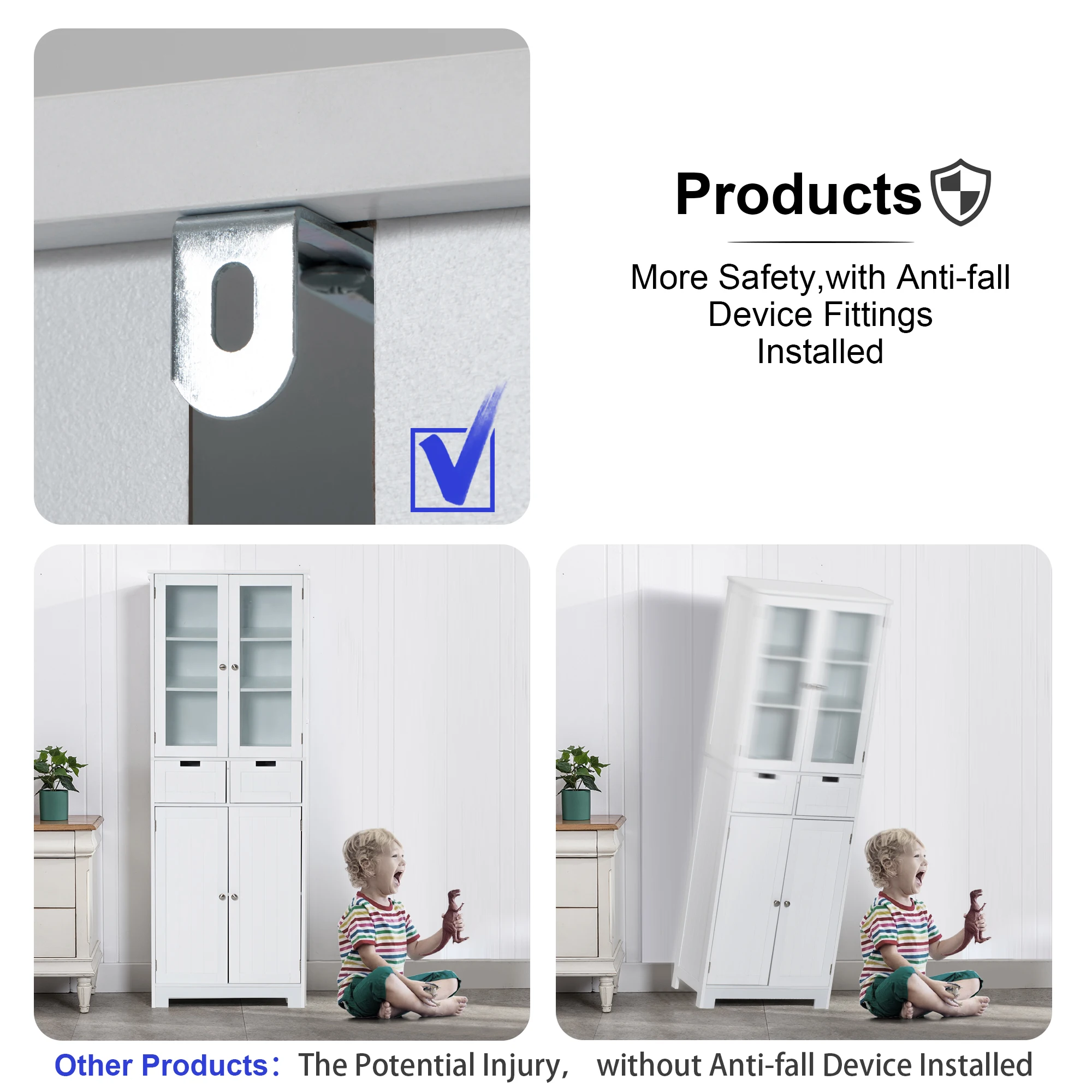 【Modern Style】 This eye-catching tall bathroom cabinet can perfectly blend with neutral palettes and modern furniture. We have designed a semicircular metal handle for the drawer and a double anti-tipping feature to keep the family members safe.