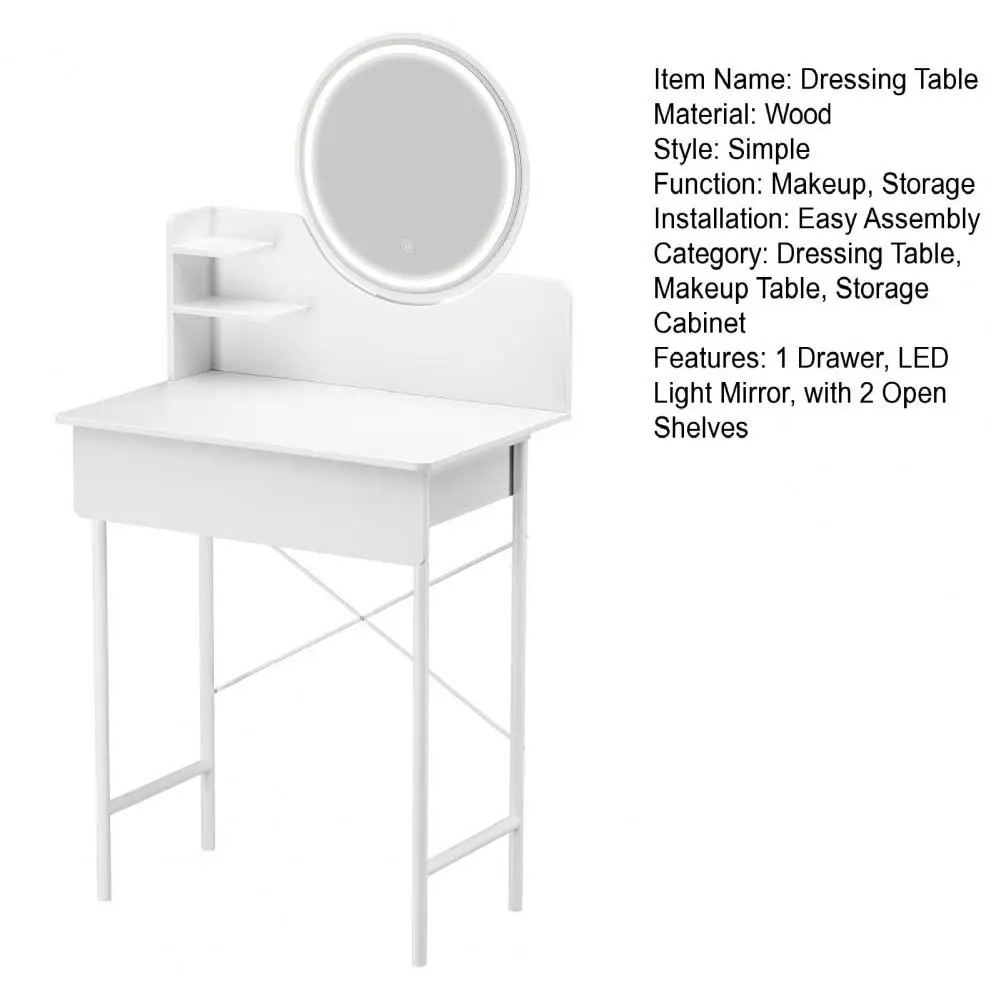 Bedroom Dressing Table 3 Modes Brightness Adjustable Makeup Vanity Desk with LED Lighted Mirror Vanity Table with 1 Drawer