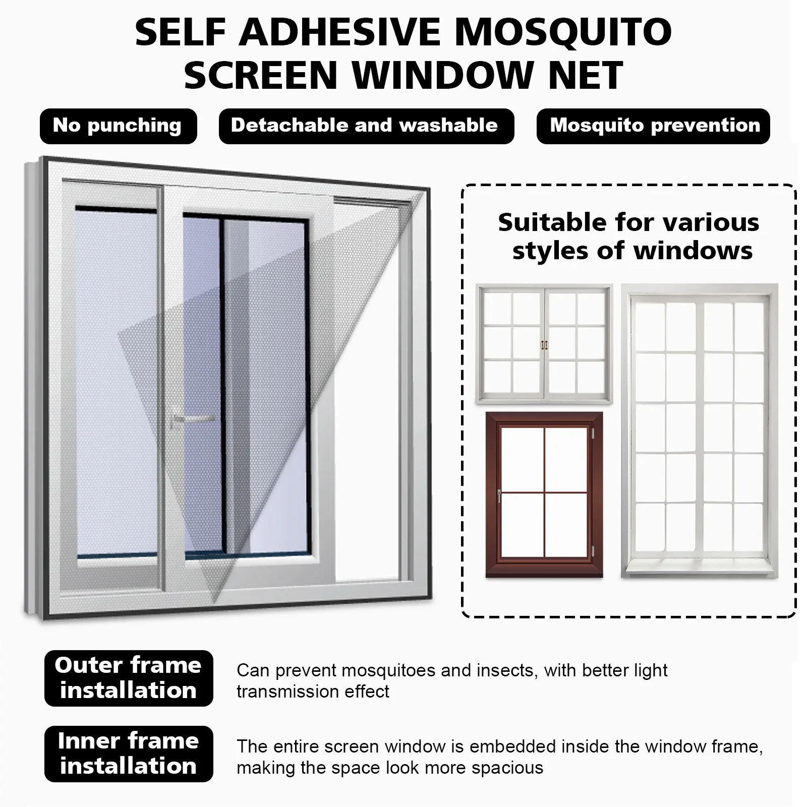 Size: 150x200cm/130x150cm,Can be easily cut down to size and fitted to multiple windows, stick the self-adhesive tape to the window frame place the netting over and cut off any excess.Â