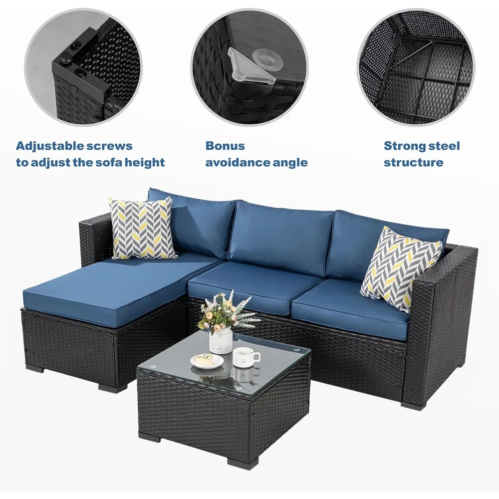 • Durable & Practical: Made from high-quality resin wicker, our outdoor furniture is all-weather resistant. And upgrated L shaped sofa footrest is adjusted and can be adapted to a variety of surfaces to maintain stability, such as gravel, grass and brick.