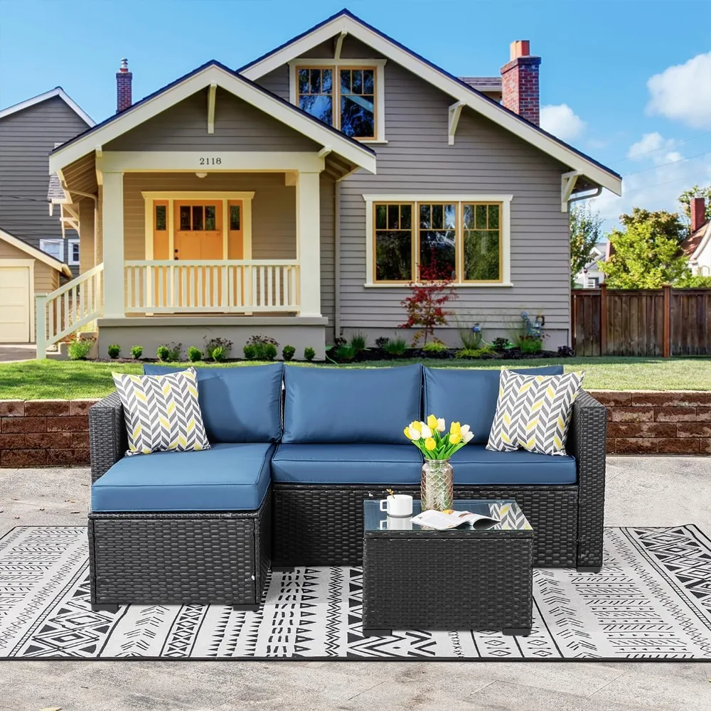 • 5 Piece Patio Furniture: Consist of 1 tempered glass table, 1 ottoman and 1 armless sofa, and 2 corner sofas, this patio sectional sofa can accommodate 8-9 people and is suitable for hosting your Family, Friends, and Neighbors.