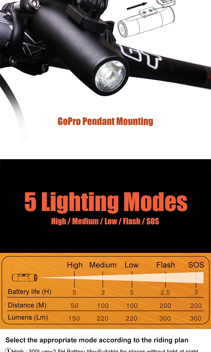 The lamp is of good quality and works perfectly. It brings five lighting modes: high, medium, low, flashing and S.O.S. as the GoPro support, as the handlebar is quality. I am very satisfied with the purchase. XOSS brand makes good products.