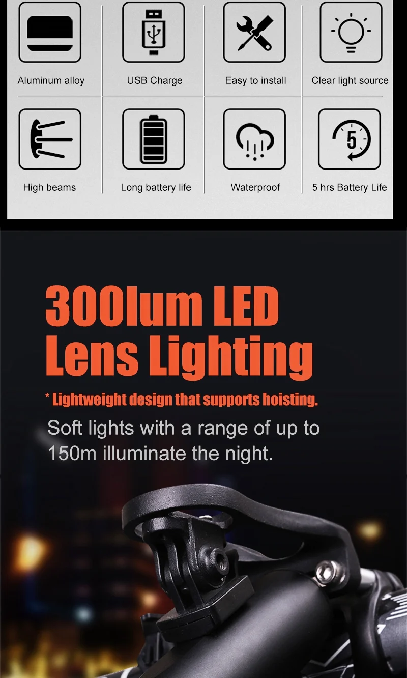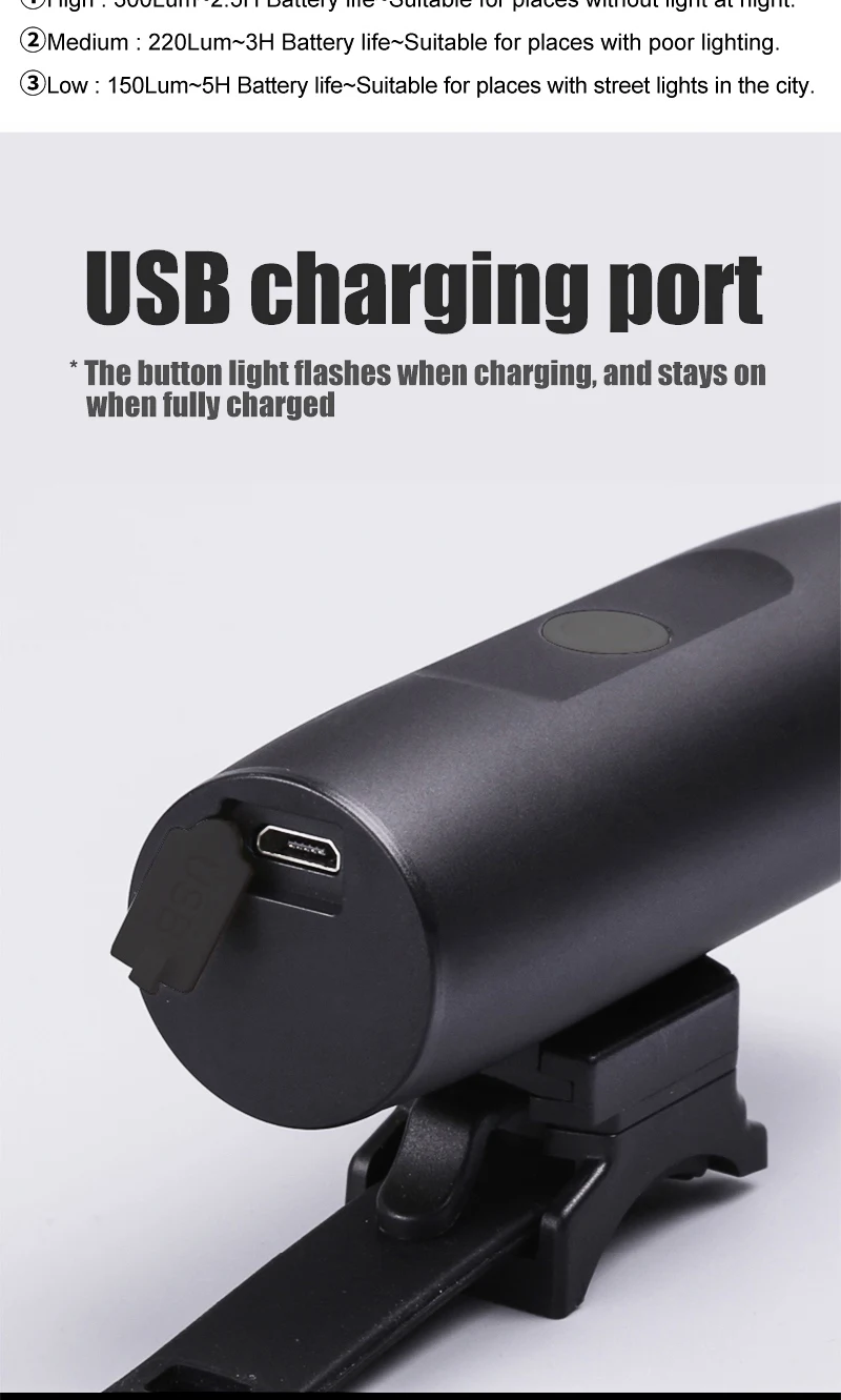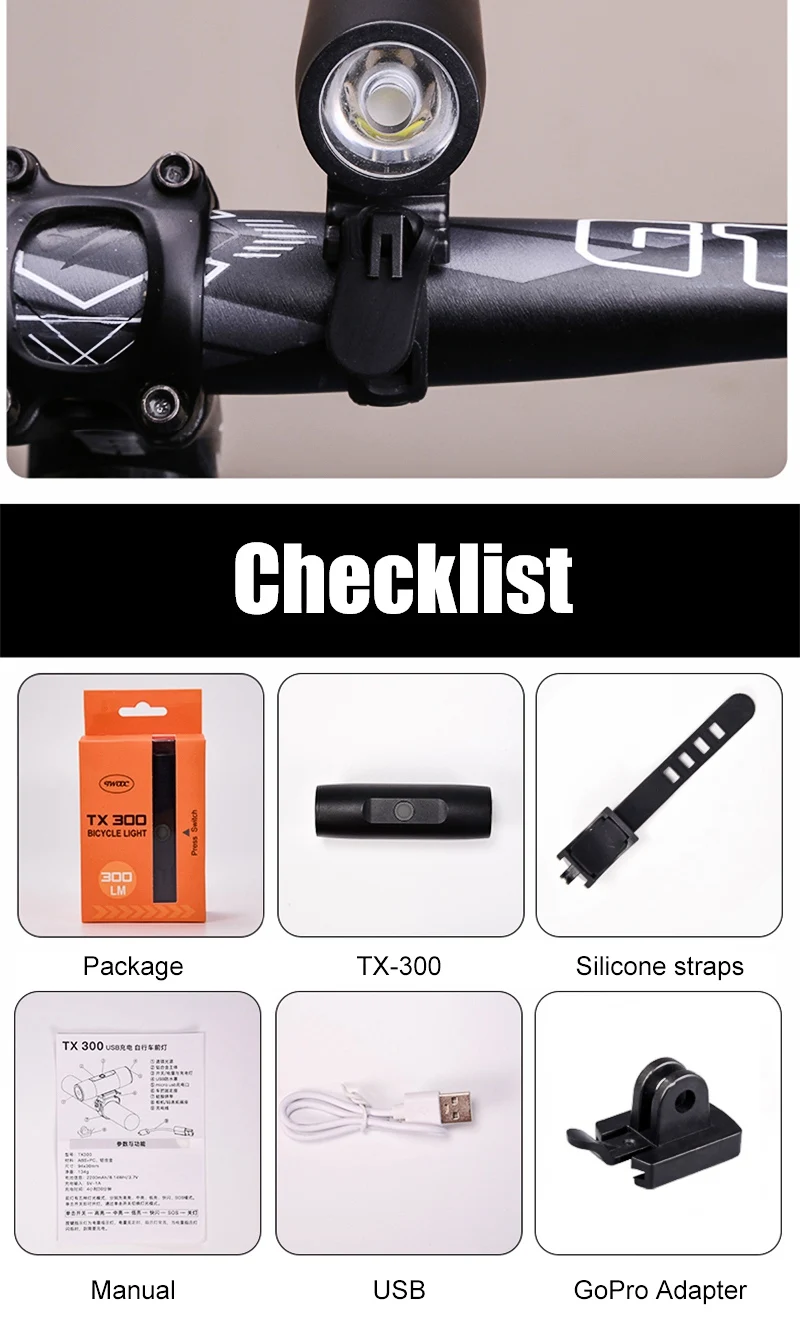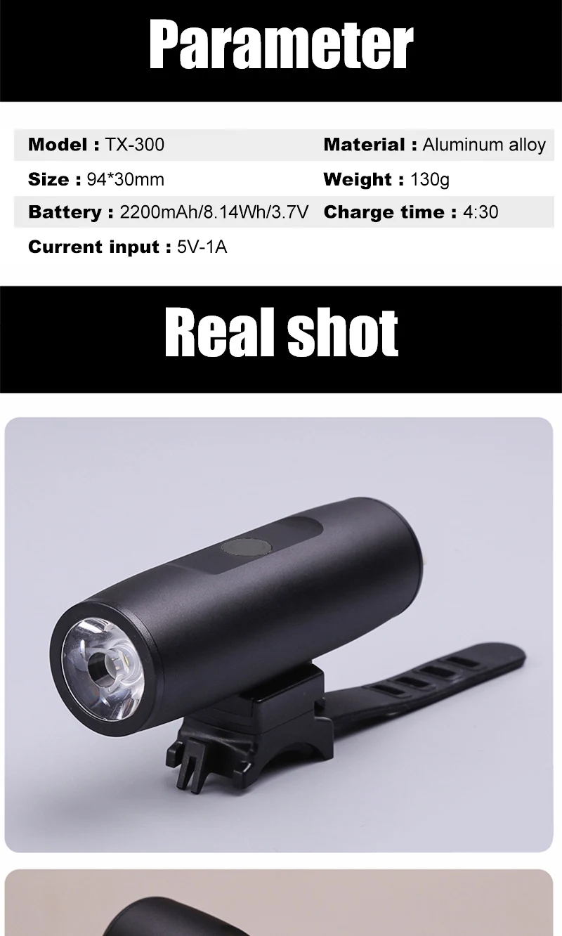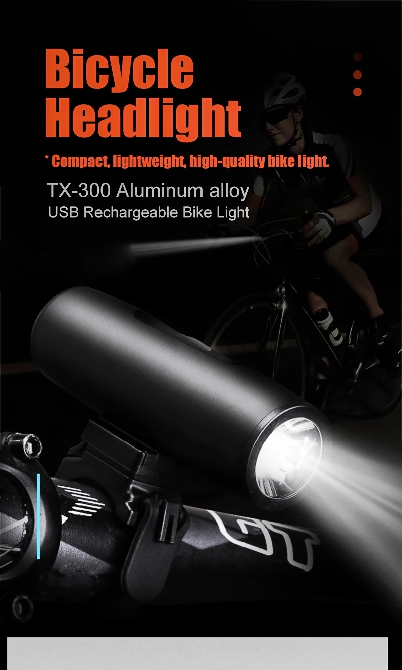 Bicycle Light 300Lumen Bike Headlight Power Bank Flashlight Handlebar USB Charging MTB Road Cycling Highlight TX 300